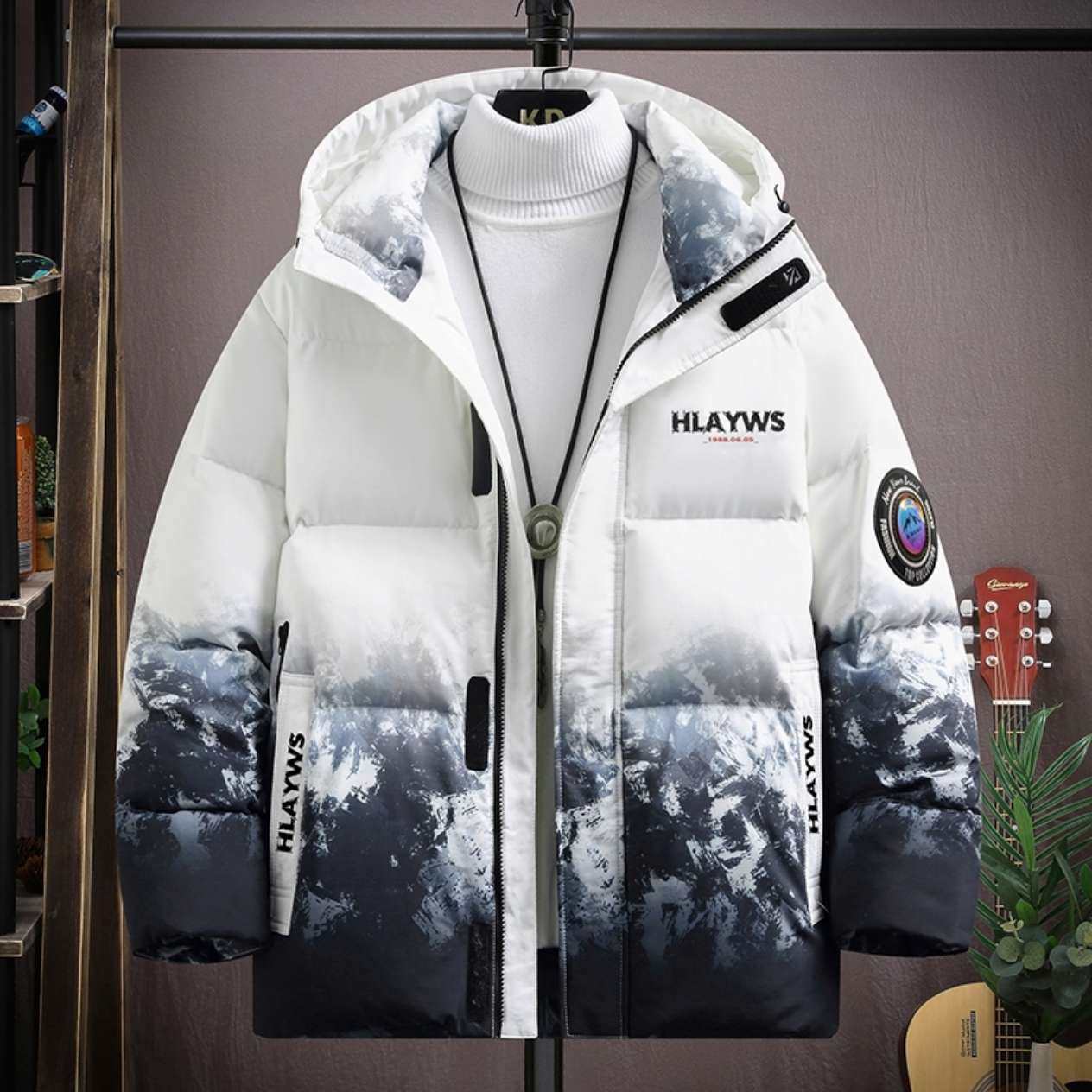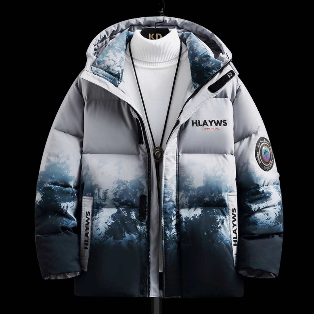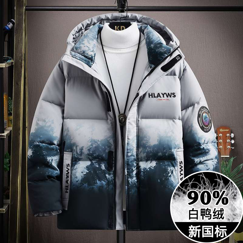 90白鸭绒渐变色羽绒服男生冬季2025新款潮流百搭宽松连帽防寒外套
