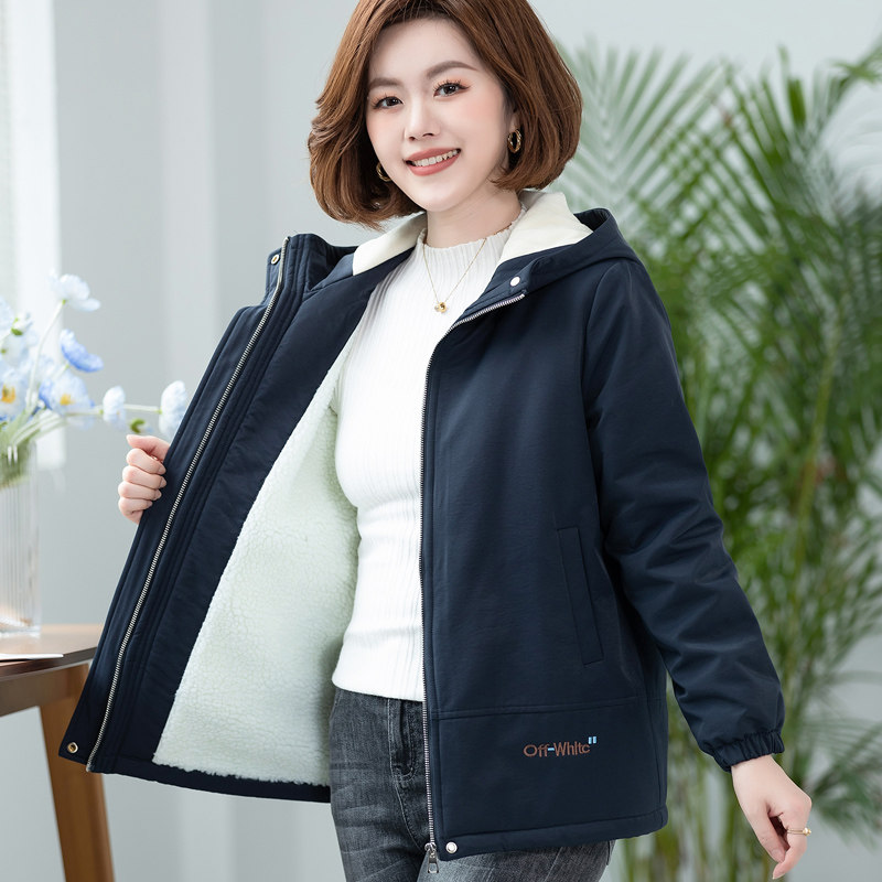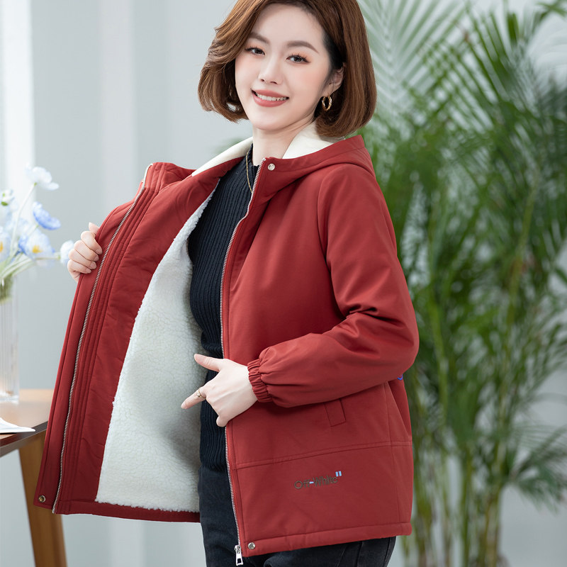 中年妈妈加绒外套女士羊羔绒棉衣冬装新款保暖派克服洋气减龄棉服