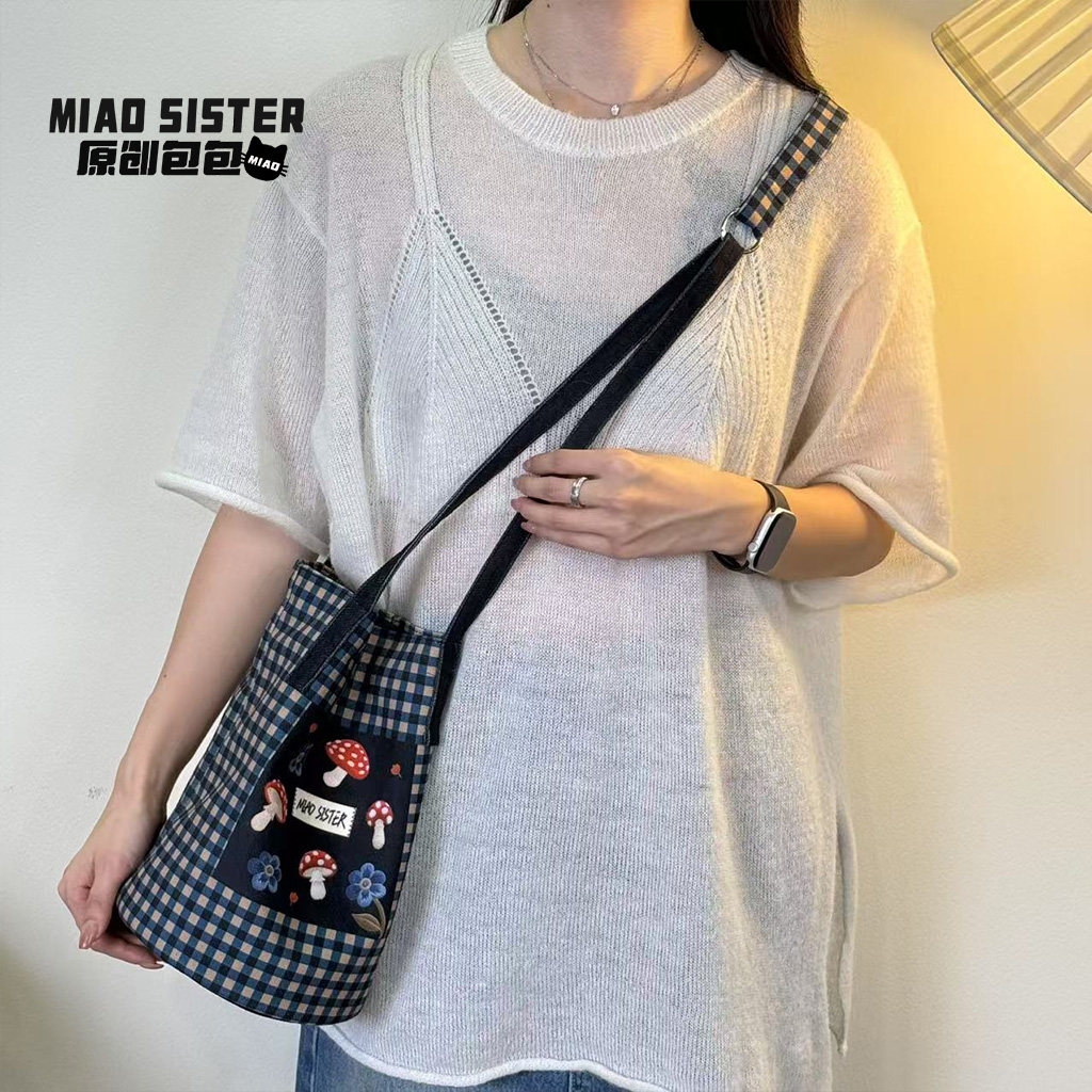 MIAO花花蘑菇斜挎包女款水桶包包女式2025新款单肩日常通勤百搭夏