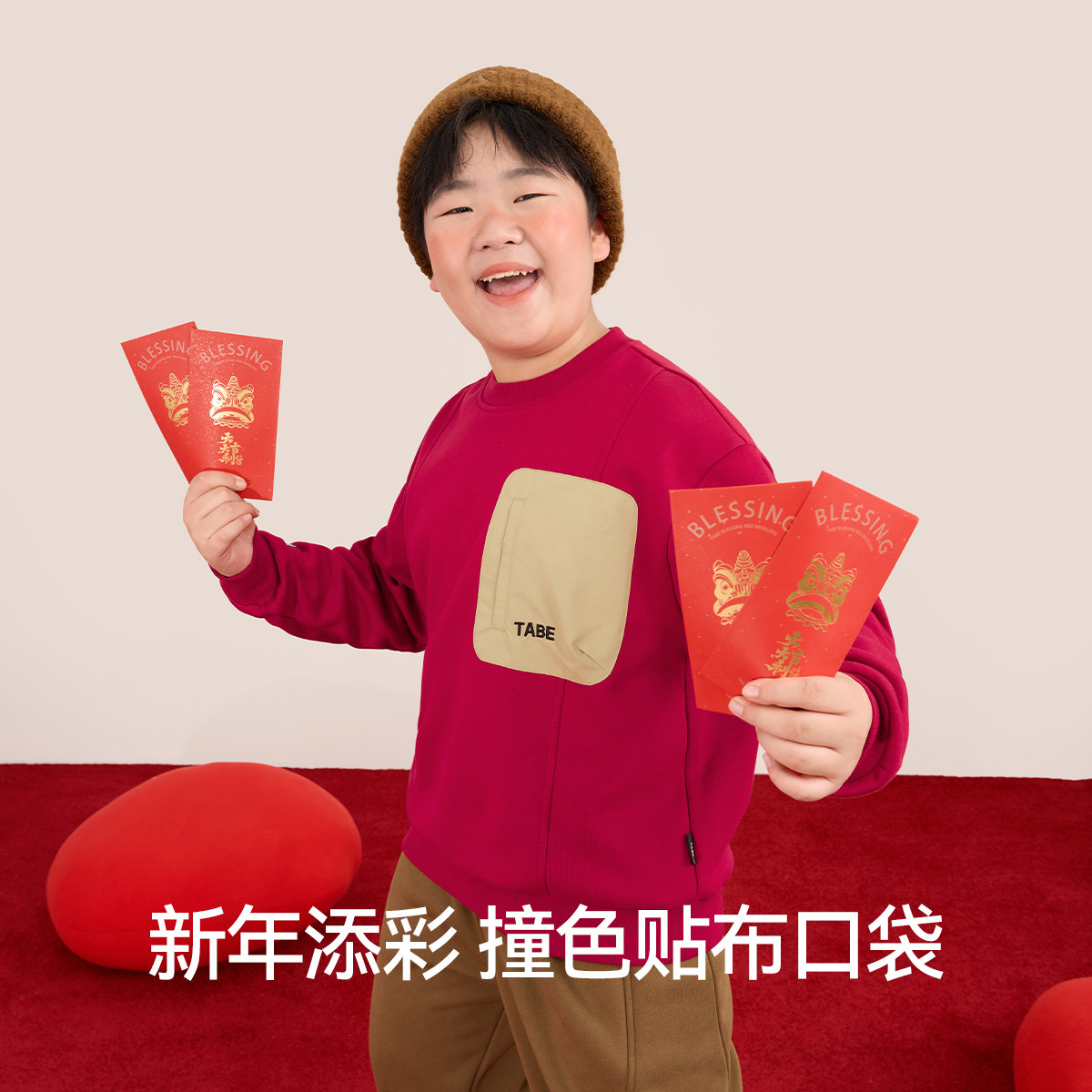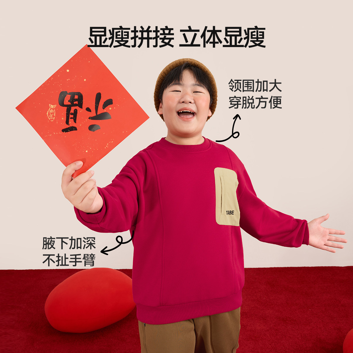 【马年本命年加绒卫衣】小猪托尼胖孩子童装男童红色大童青少年潮