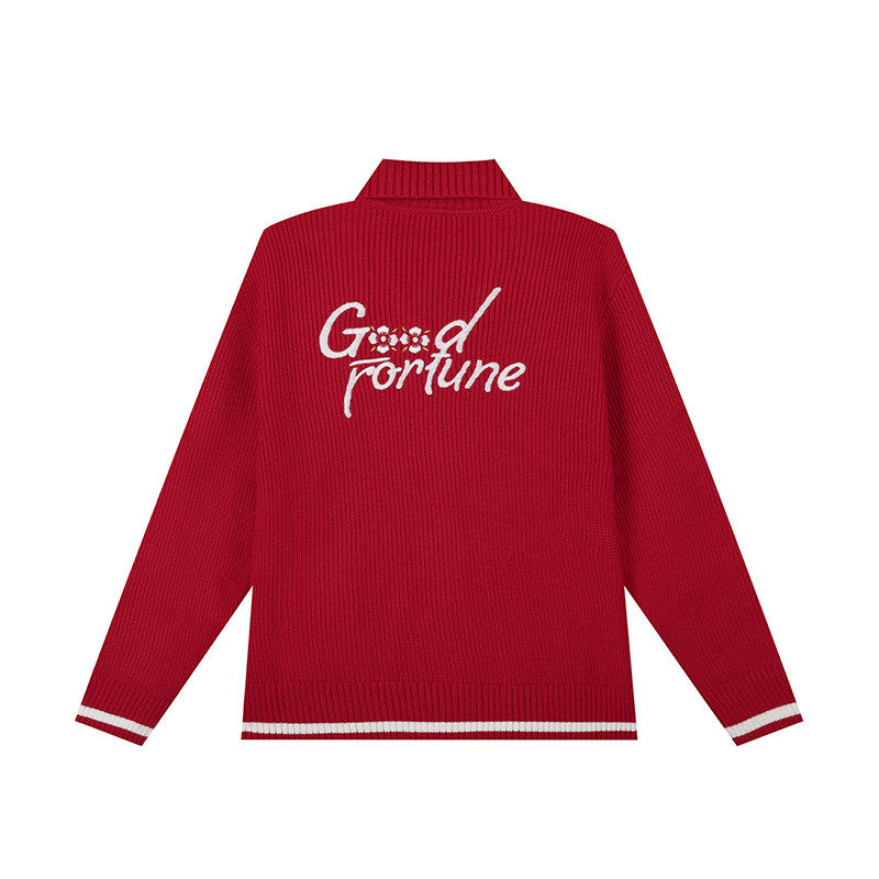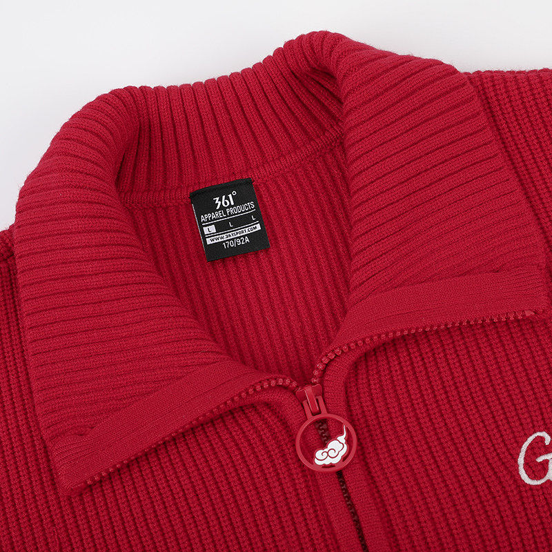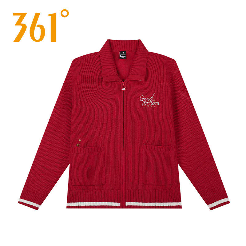 361度针织外套女2026春秋新款女士翻领开衫毛衣红色长袖休闲上衣