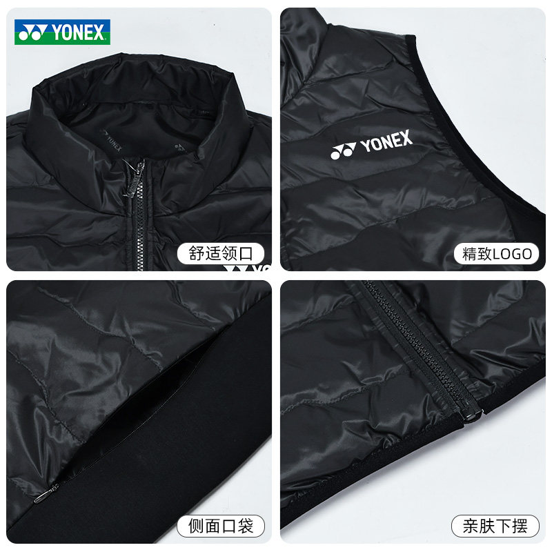 正品2025新款YY尤尼克斯羽绒服马甲秋冬季短款保暖专业羽毛球服装
