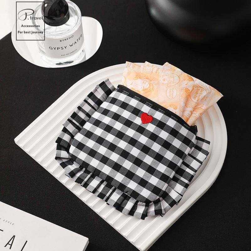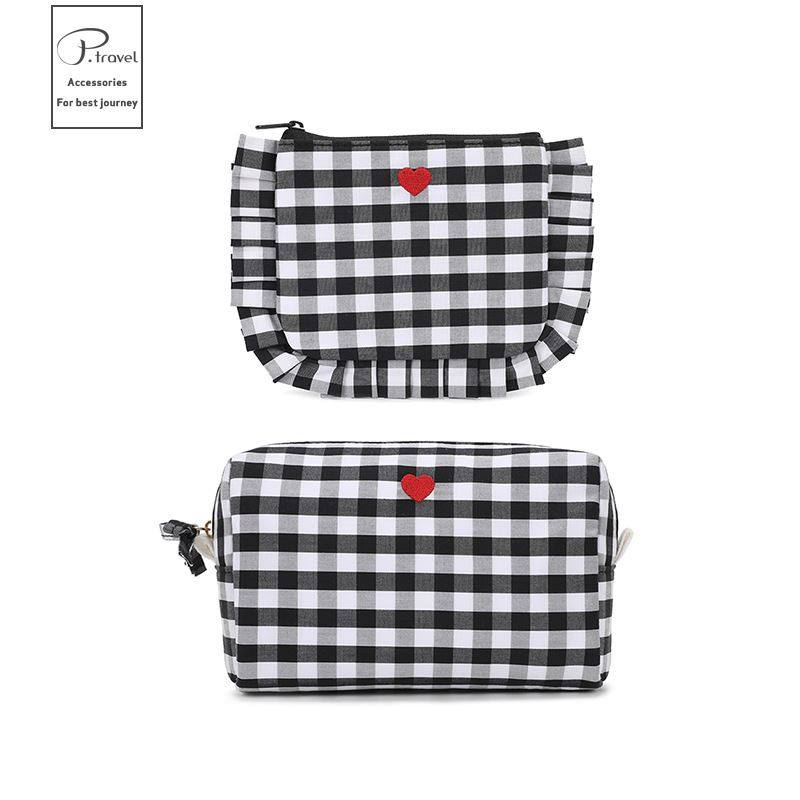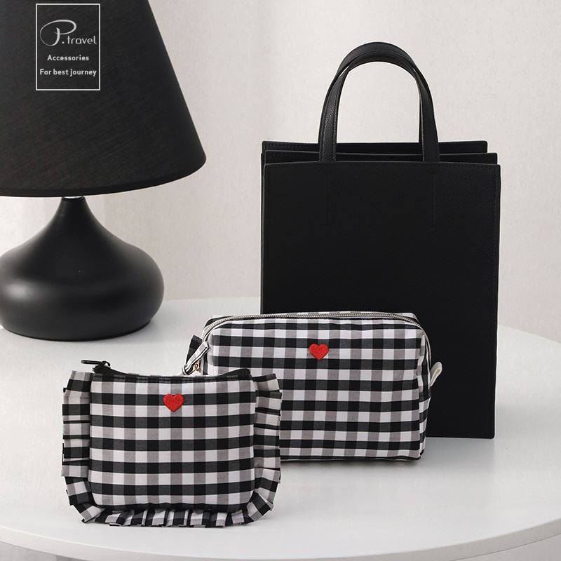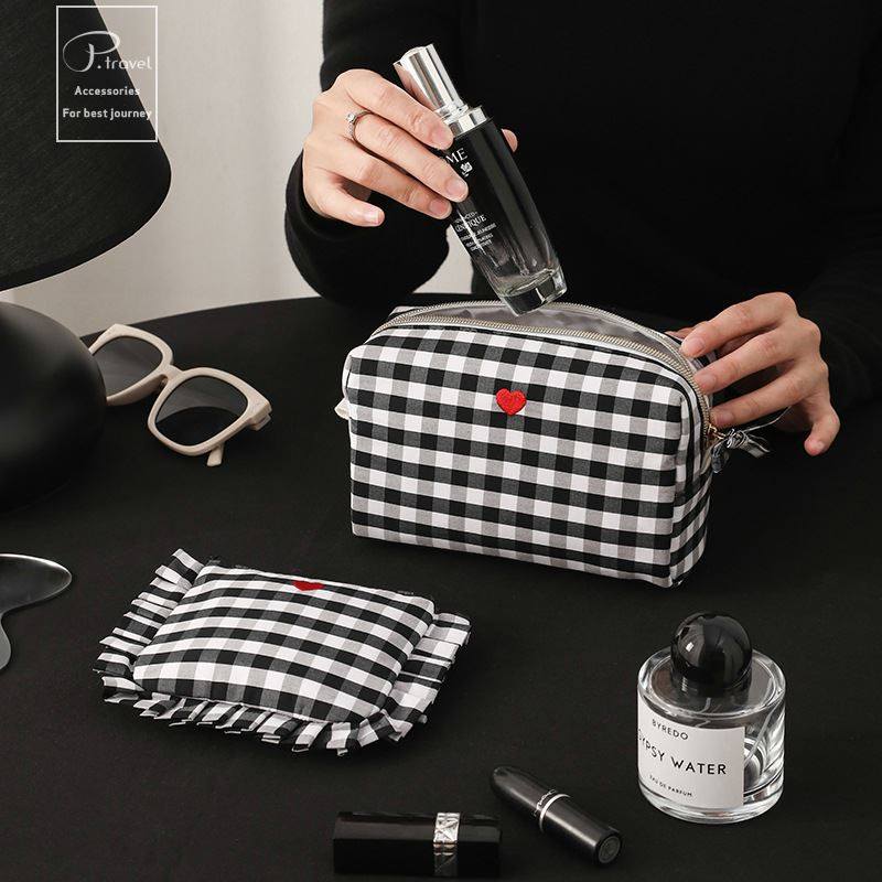 源头工厂简约风棋盘格化妆包收纳袋女生旅行轻潮口红包便携出行