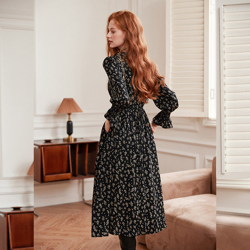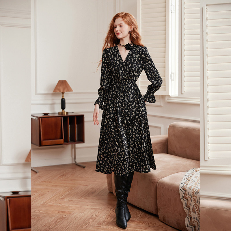 311线报网描述:法式优雅风连衣裙 V领长袖长裙 套头穿