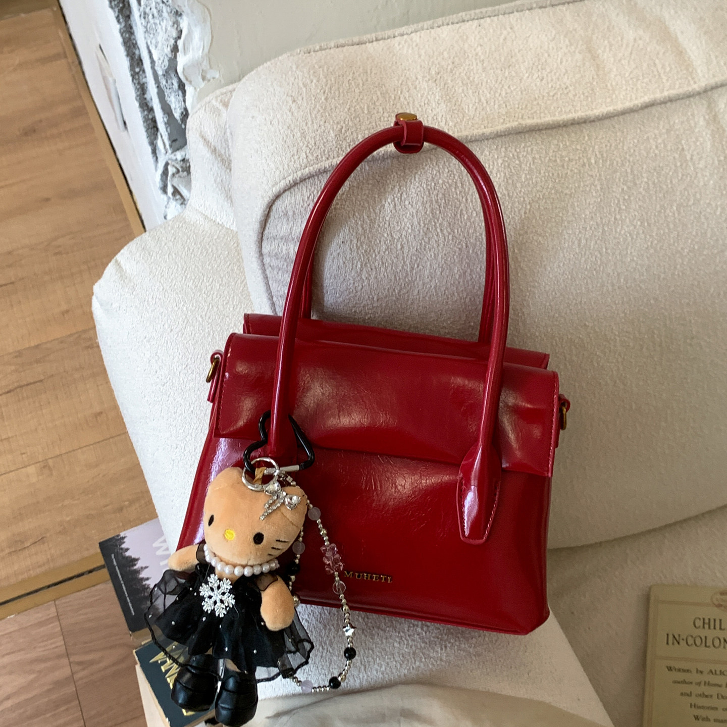 红色包包女款2026新款潮时尚高级感轻奢小众手提包单肩斜挎包女包