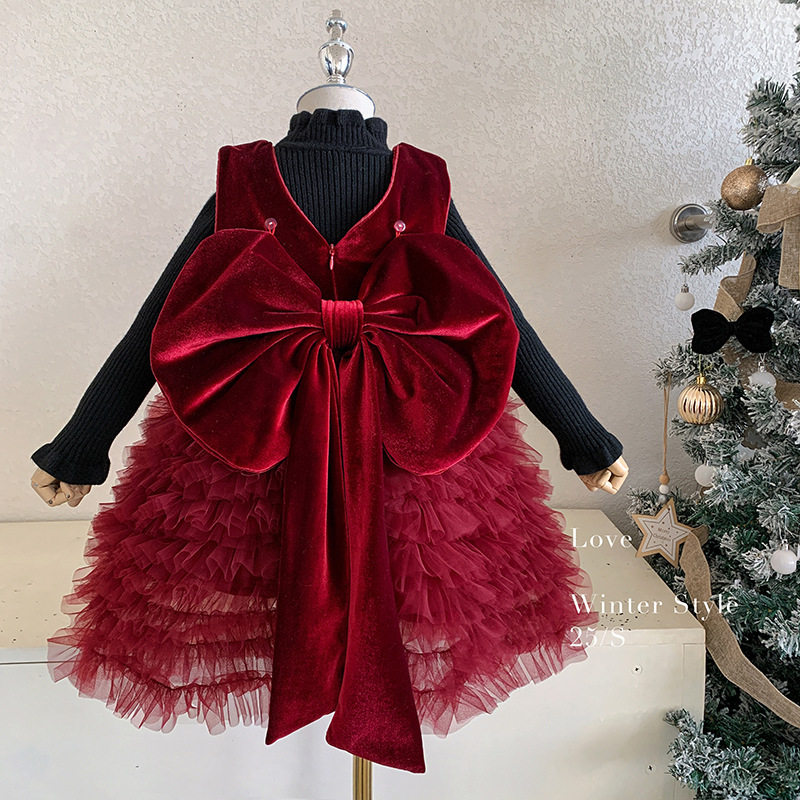 女童加绒连衣裙冬装高级感公主裙儿童新年礼服裙套装过年红色裙子