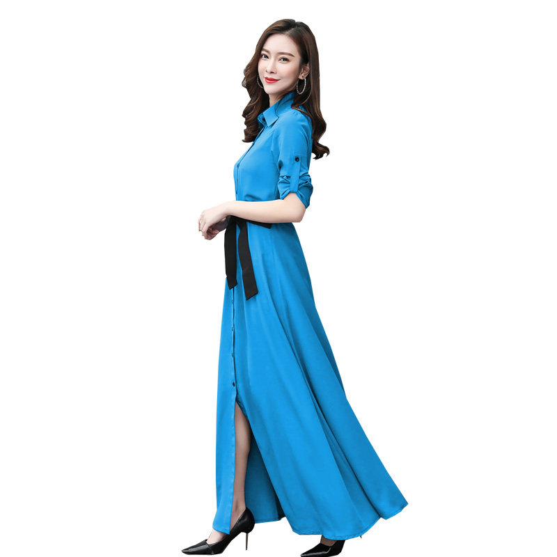 新款女神范衣服超仙打底连衣裙长袖春秋正式场合衬衫领内搭长裙潮