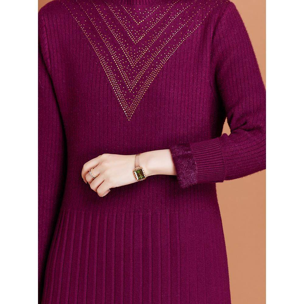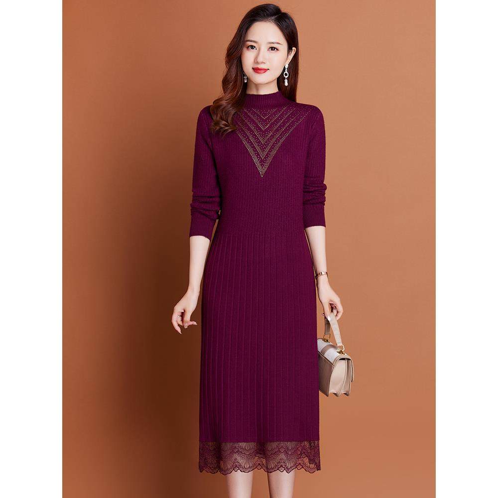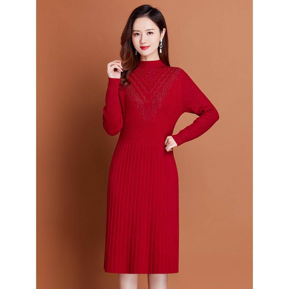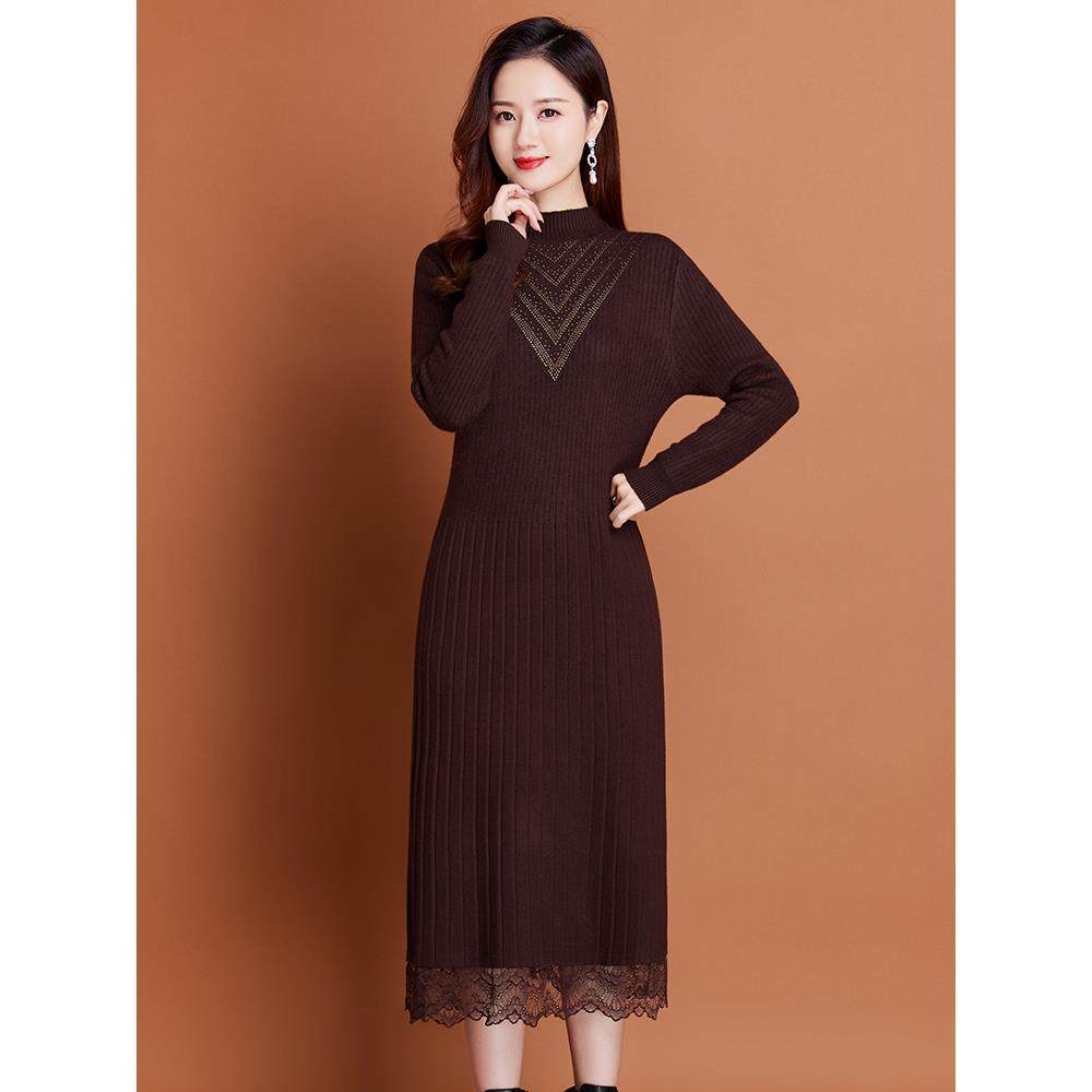 保暖加绒加厚气质毛衣长款针织连衣裙一体绒修身胖mm打底裙女秋冬