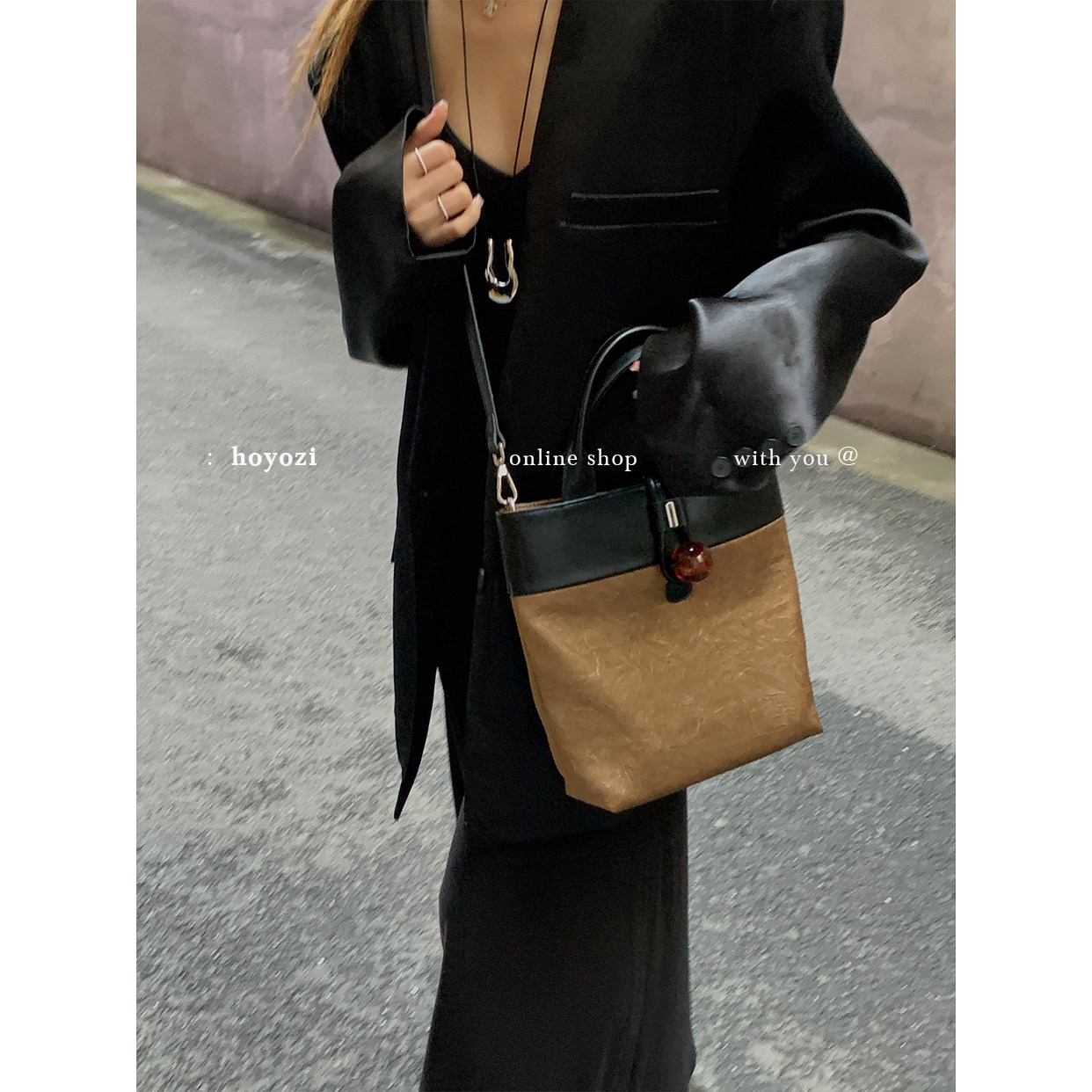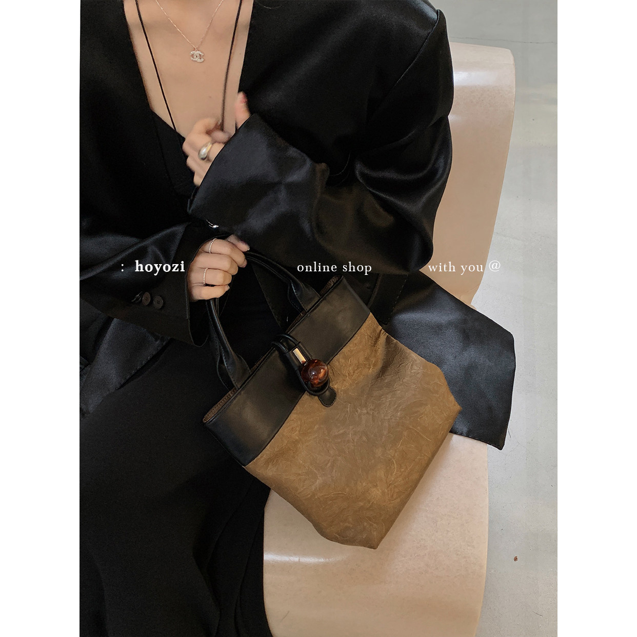 【小优家包包】HOYOZI原创 琥珀珠托特手拎小包秋季包包女款斜挎