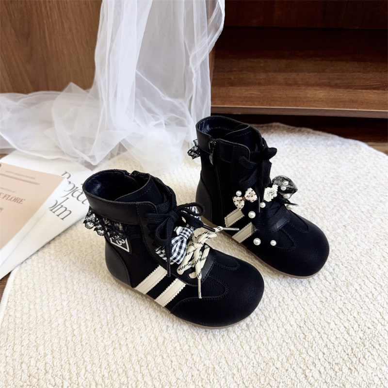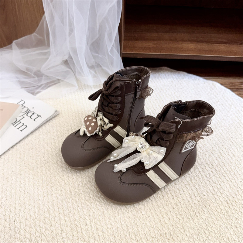 加绒二棉小短靴子高帮休闲运动蝴蝶结公主小女孩德训女童马丁洋气