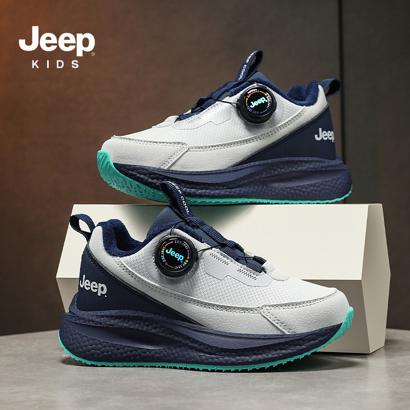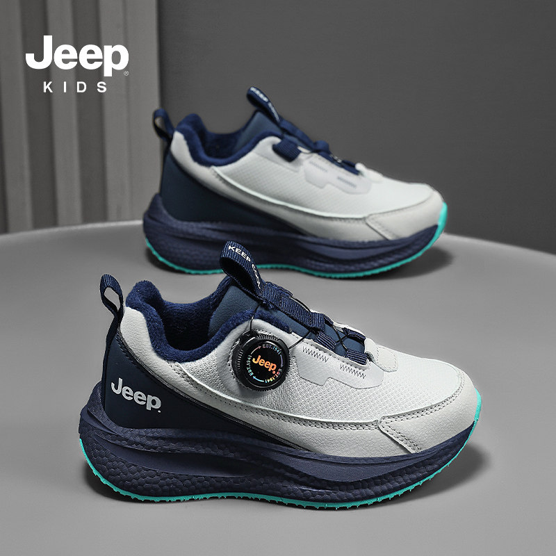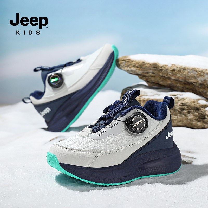 Jeep男童二棉冬季新款软底运动鞋女童侧面纽扣儿童运动鞋加绒防滑