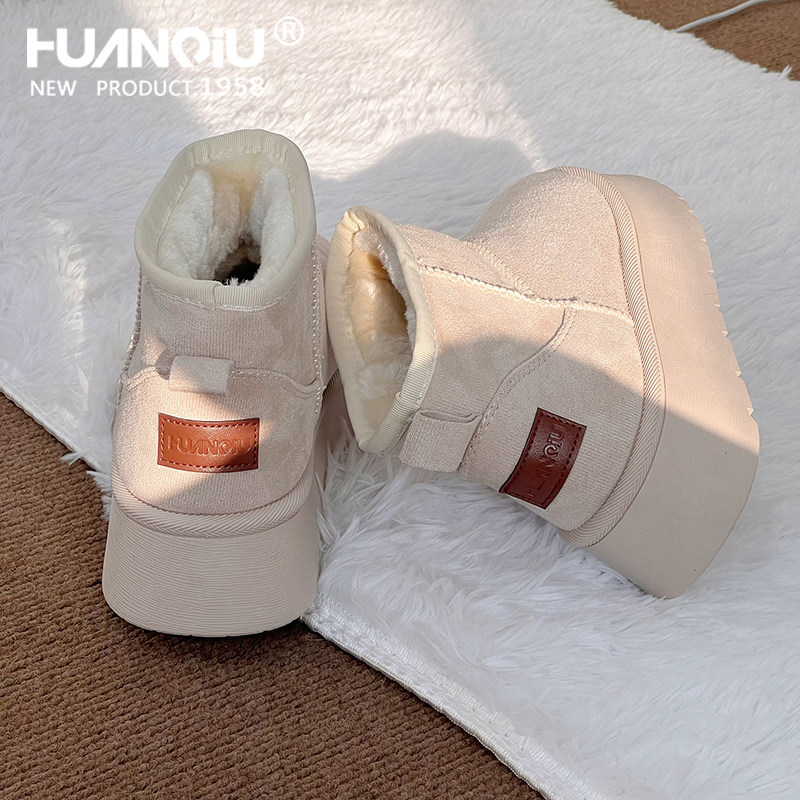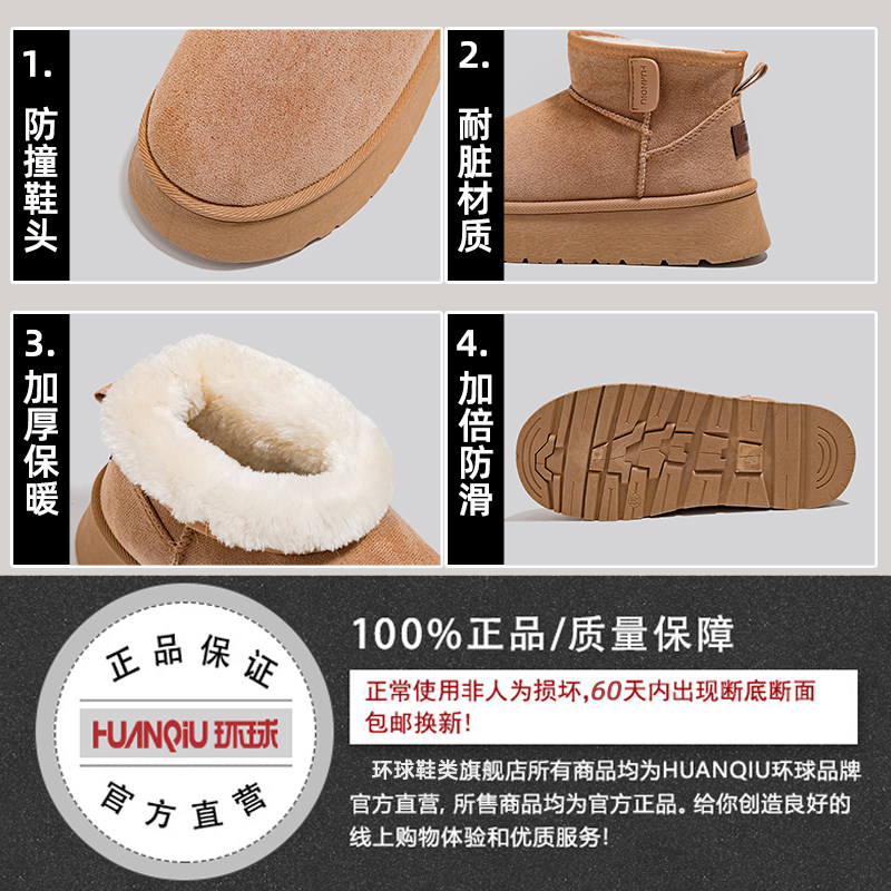 环球防滑厚底雪地靴女款2025新款冬季东北加绒加厚增高保暖棉鞋冬