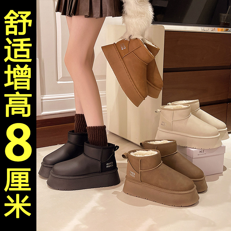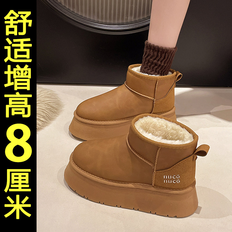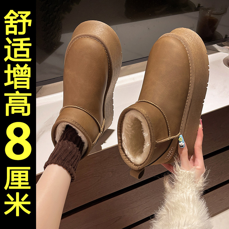 内增高东北雪地靴女2025冬季新款厚底保暖棉鞋加绒加厚毛毛面包鞋