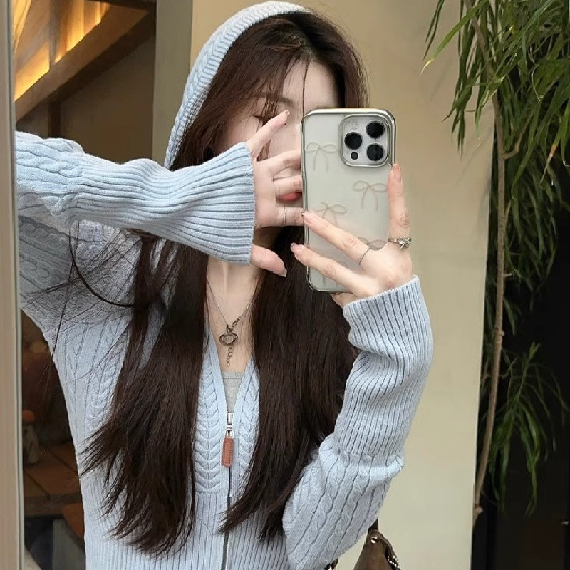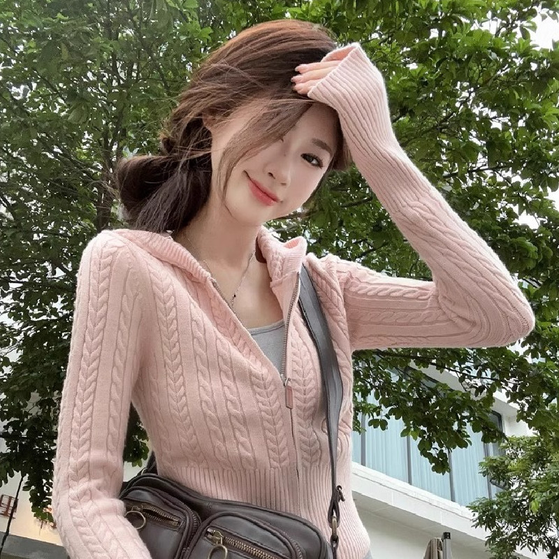 东莞大朗毛衣不起球新款正品开衫连帽针织衫秋冬短款小个子外套女