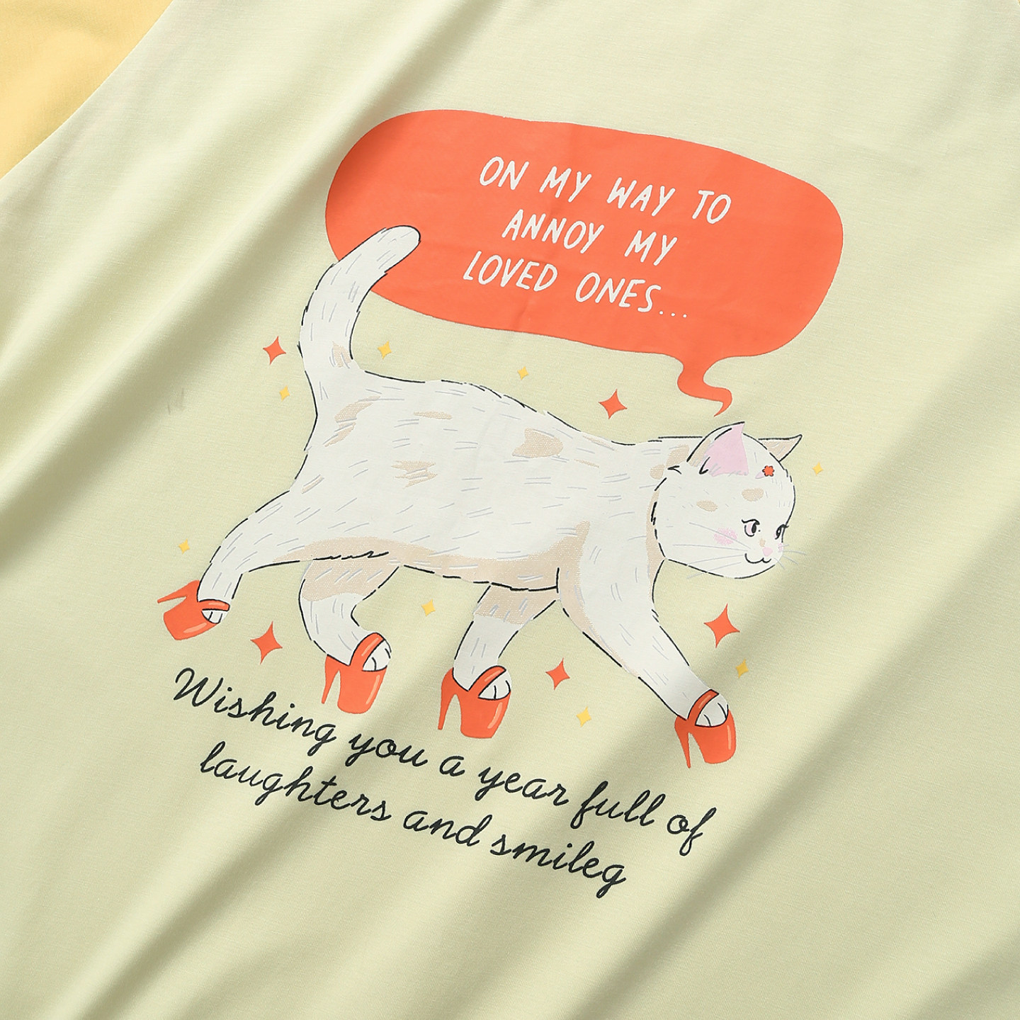 芬腾卡通纯棉女士睡裙2026新款夏季短袖薄款可爱猫咪家居服连衣裙