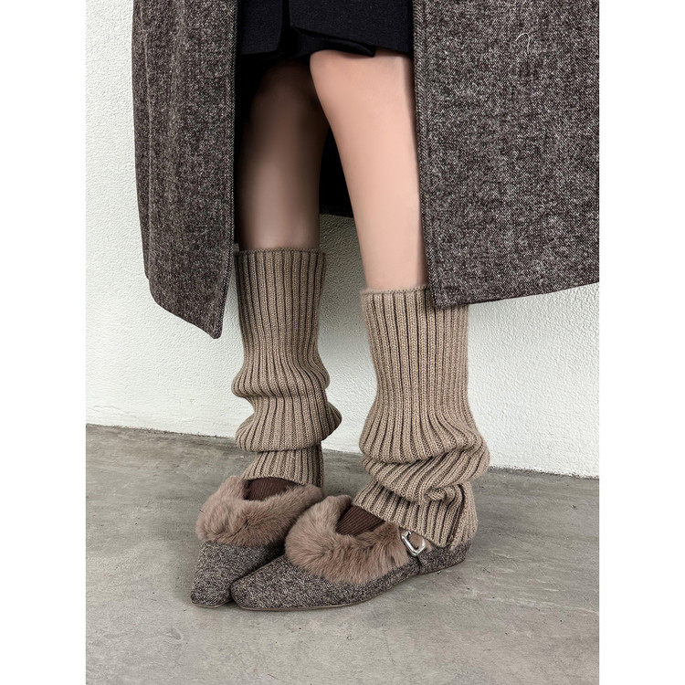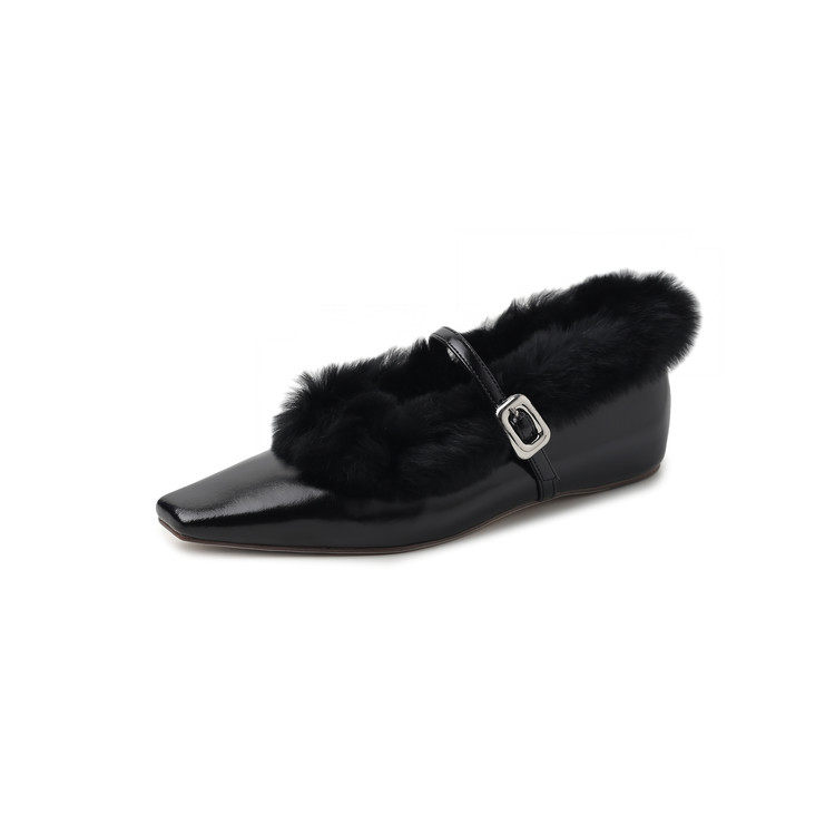 2cm内增高懒人毛毛鞋女2025秋冬新款法式一字扣带方头时尚豆豆鞋