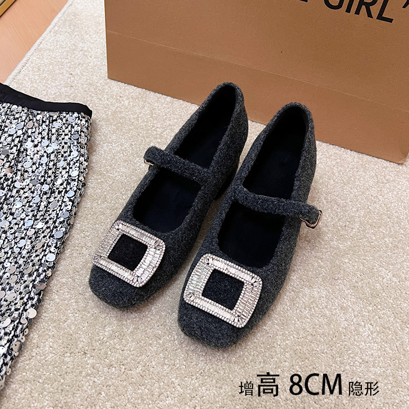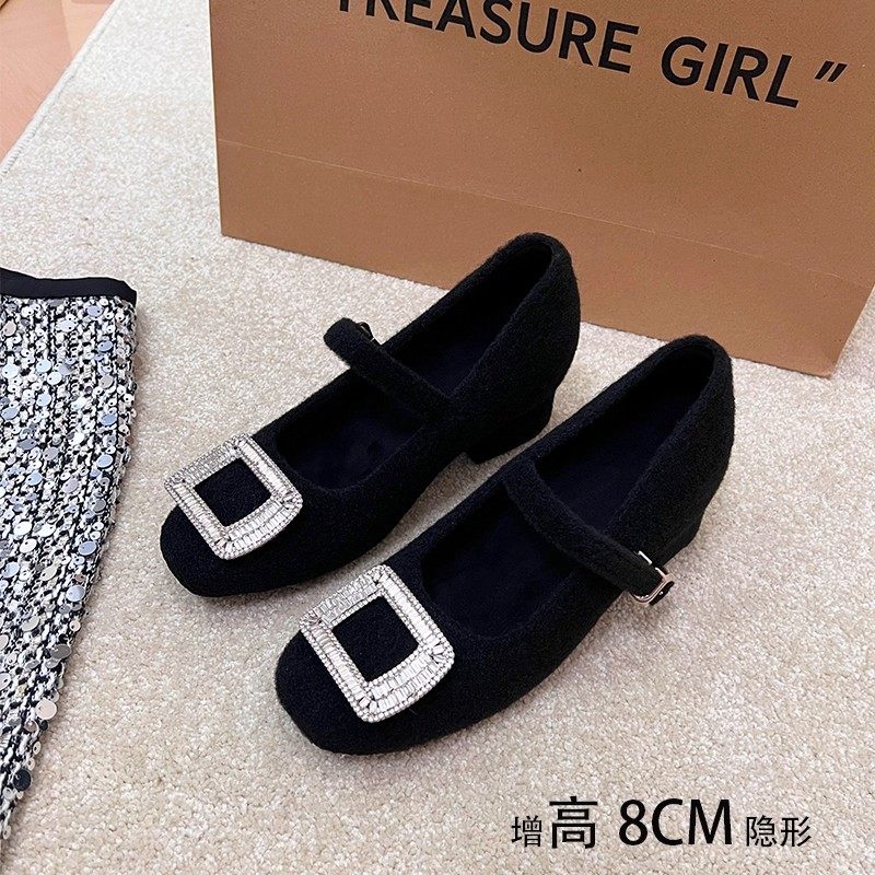 法式内增高水钻毛毛鞋女2025新款秋冬季小个子加绒玛丽珍高跟棉鞋