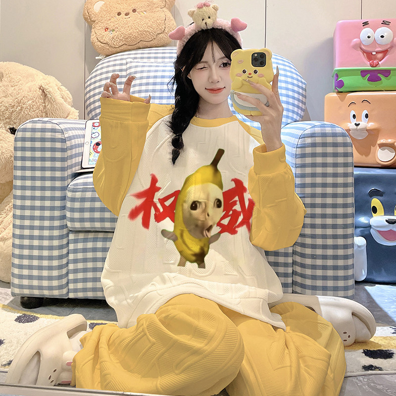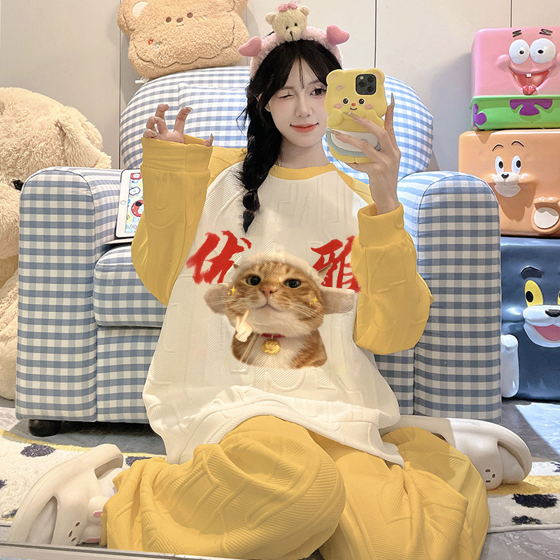 睡衣女冬权威夹棉初中生2025超火冬装一整套空气棉抽象家居服女孩