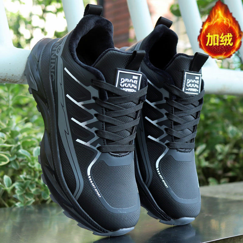 加绒运动鞋男款冬季青少年软底超轻减震保暖棉鞋初中生专用跑步鞋