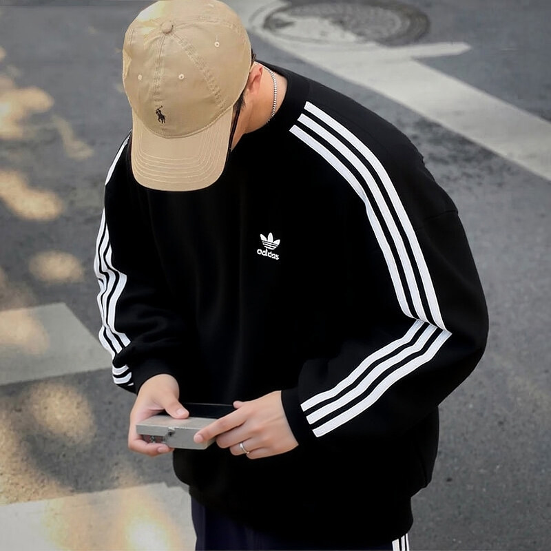 阿迪达斯三叶草官方卫衣男2025新款三条纹运动套头衫外套