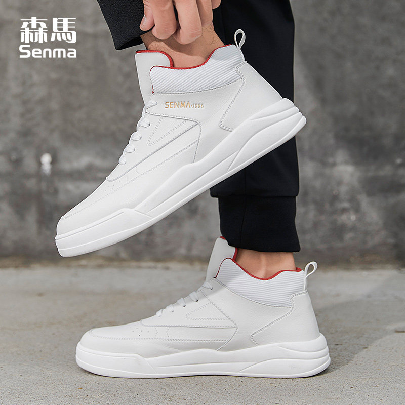 森马白色鞋子男鞋高帮小白鞋男冬季加绒韩版潮流百搭运动休闲板鞋