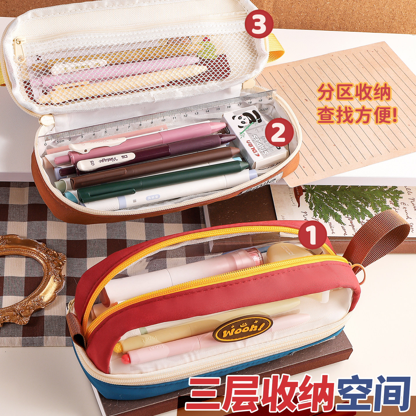 高颜值透明撞色笔袋2026新款女孩初高中学生大容量铅笔袋不撞款小学生男款小众拉链收纳文具盒包简约文具袋