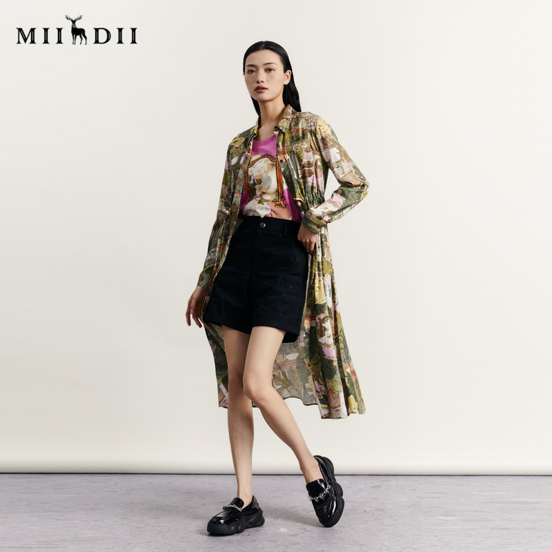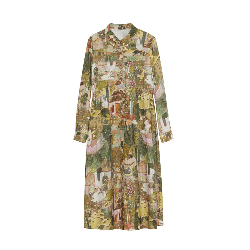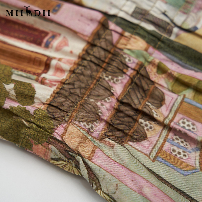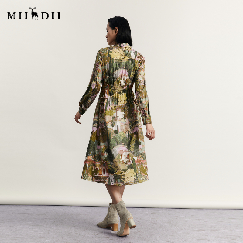 谜底花色连衣裙长袖女秋季新款复古印花A型宽松长裙233ML1001