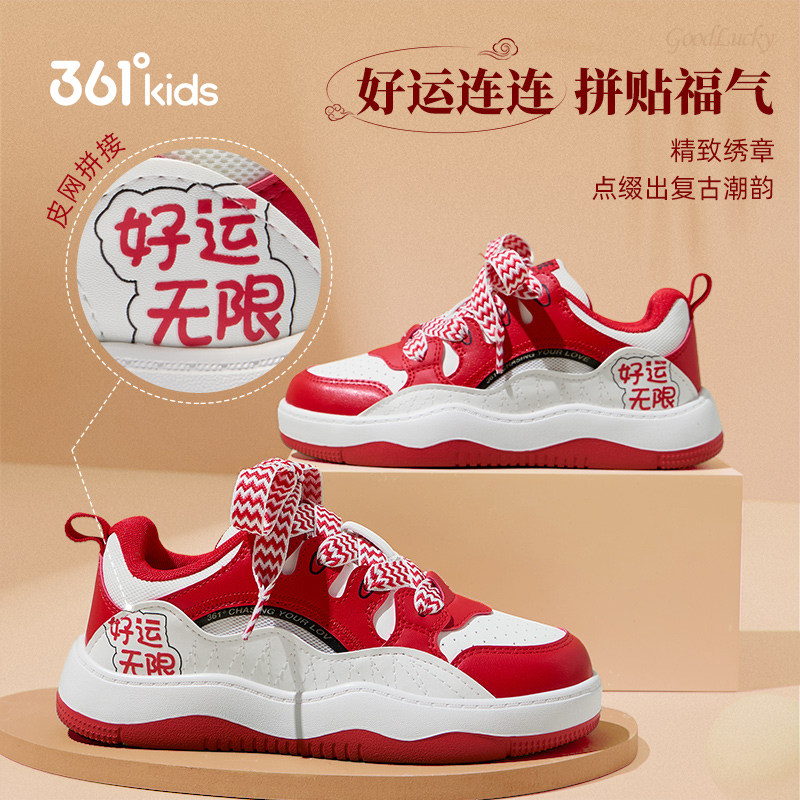 361童鞋儿童板鞋新年红色女童面包鞋子青少年小白鞋男童本命年鞋