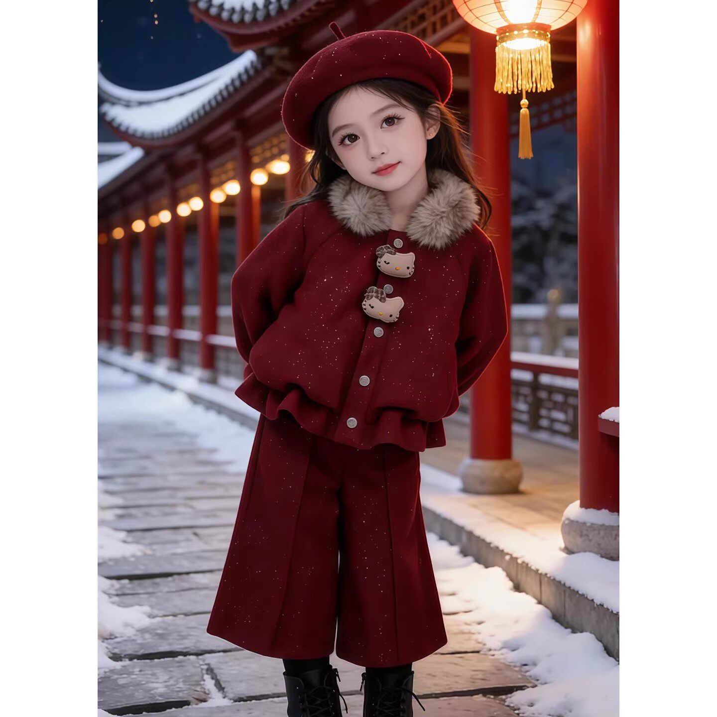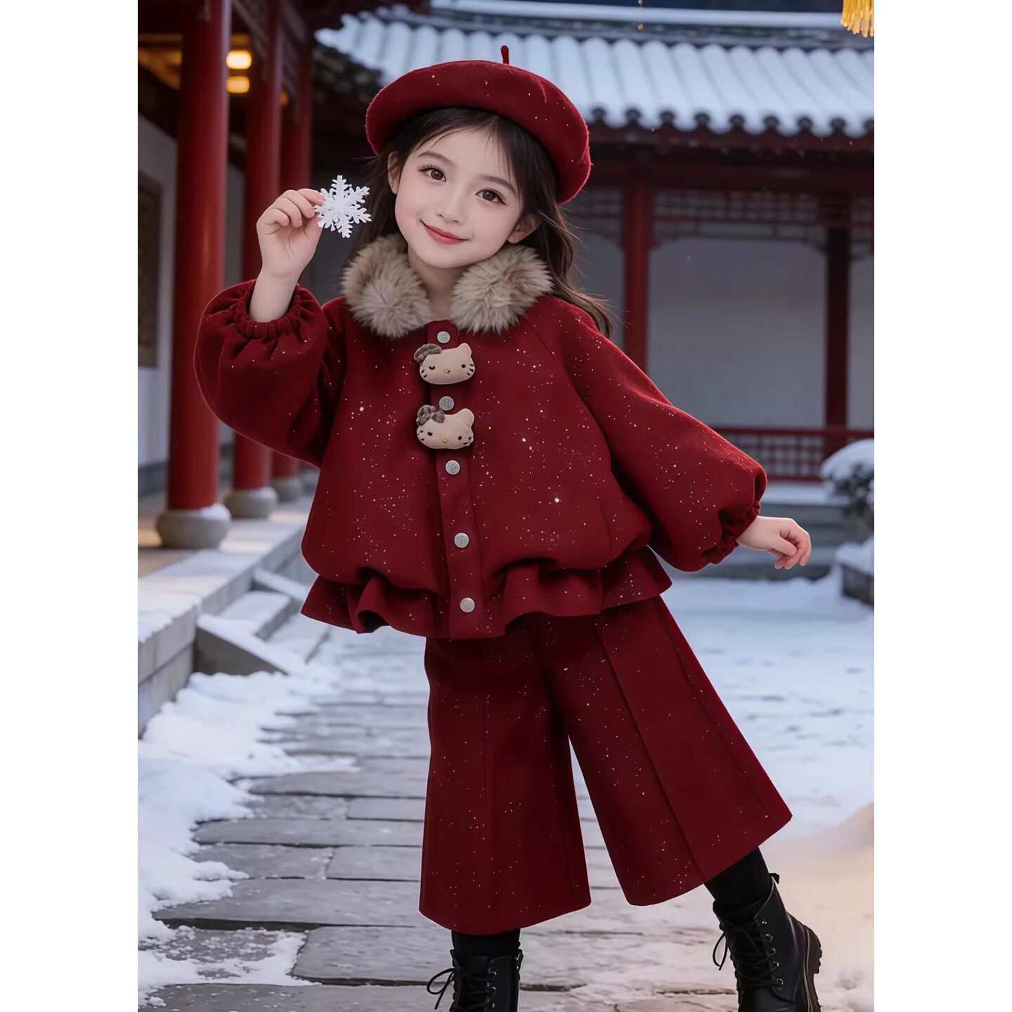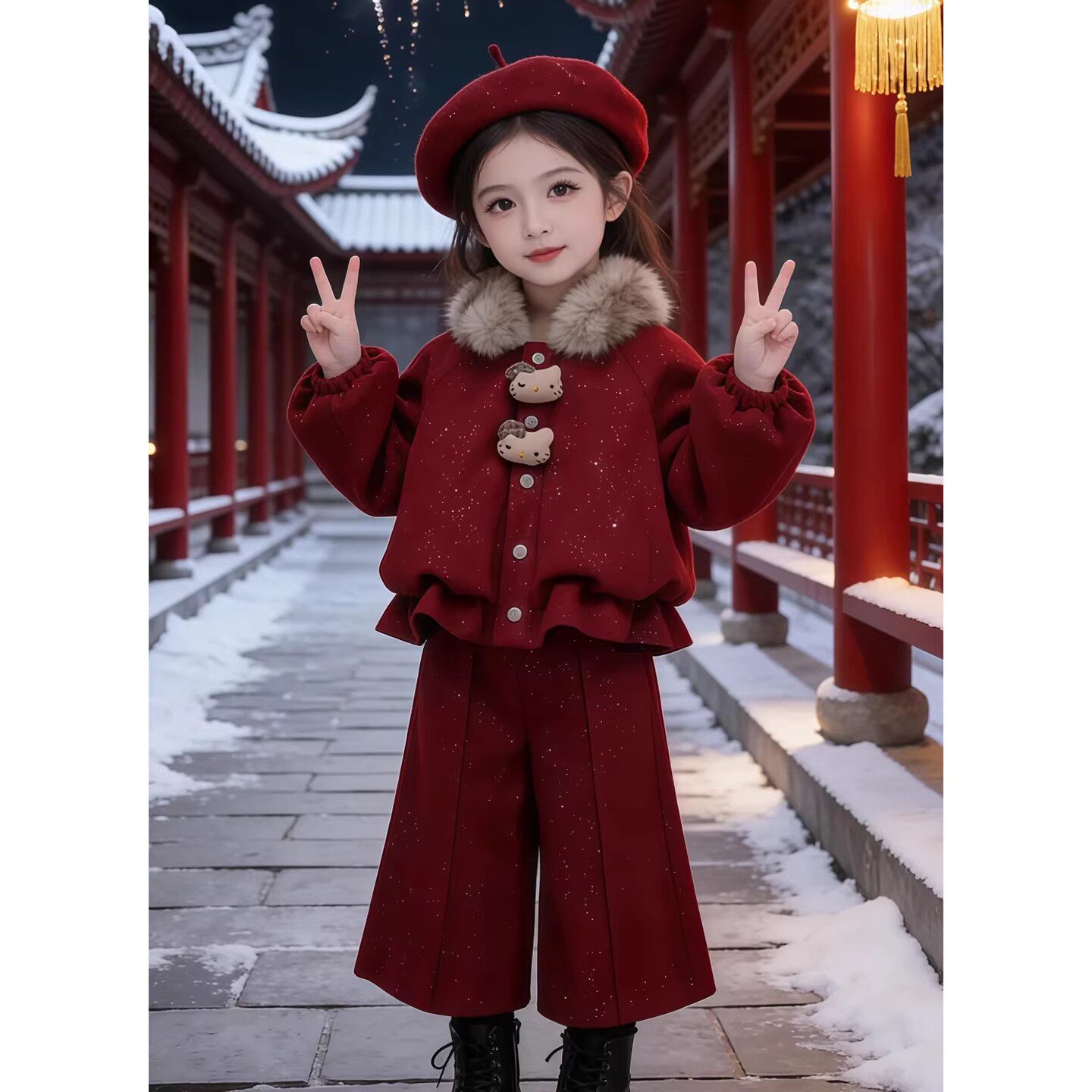 女童冬装2026新款儿童套装红色女孩新年穿搭巨好看衣服加绒过年服