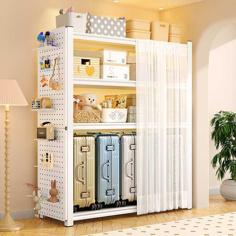 带防尘帘家用货架置物架多层储物架阳台收纳柜储藏间一体靠墙铁架