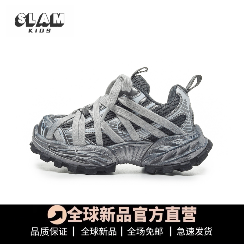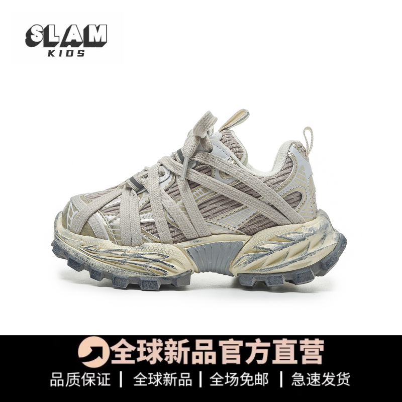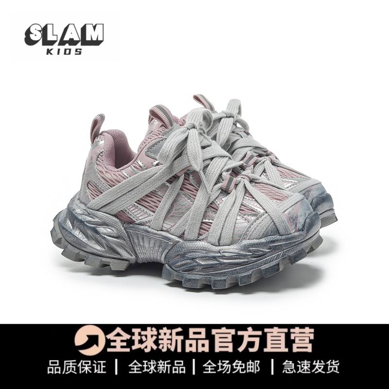 巴黎家女童运动鞋2026春秋季新款男童老爹鞋复古做旧网面儿童鞋子