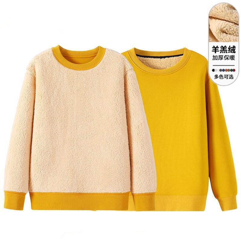 卫衣男冬加绒加厚秋冬款初中高中学生圆领羊羔绒上衣青少年保暖衣