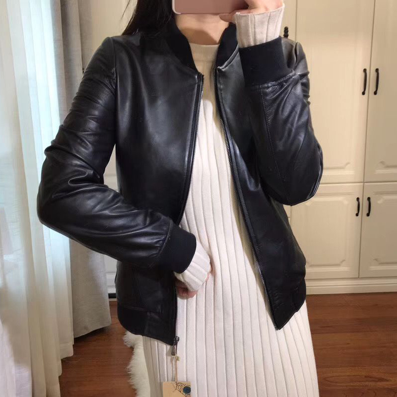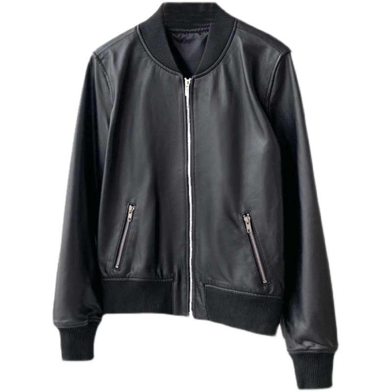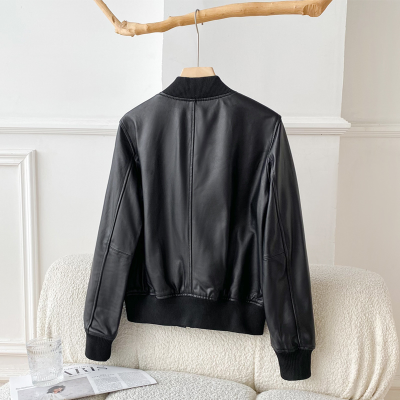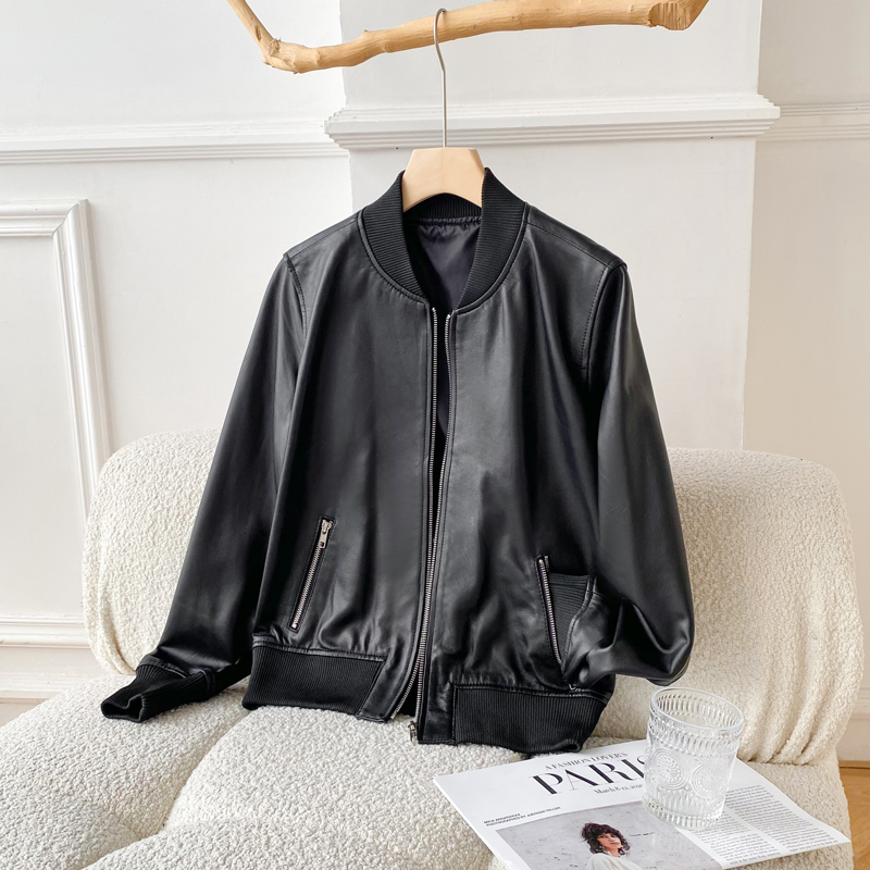 2023新秋冬绵羊皮皮衣女短款棒球服加棉真皮皮衣女机车皮夹克外套