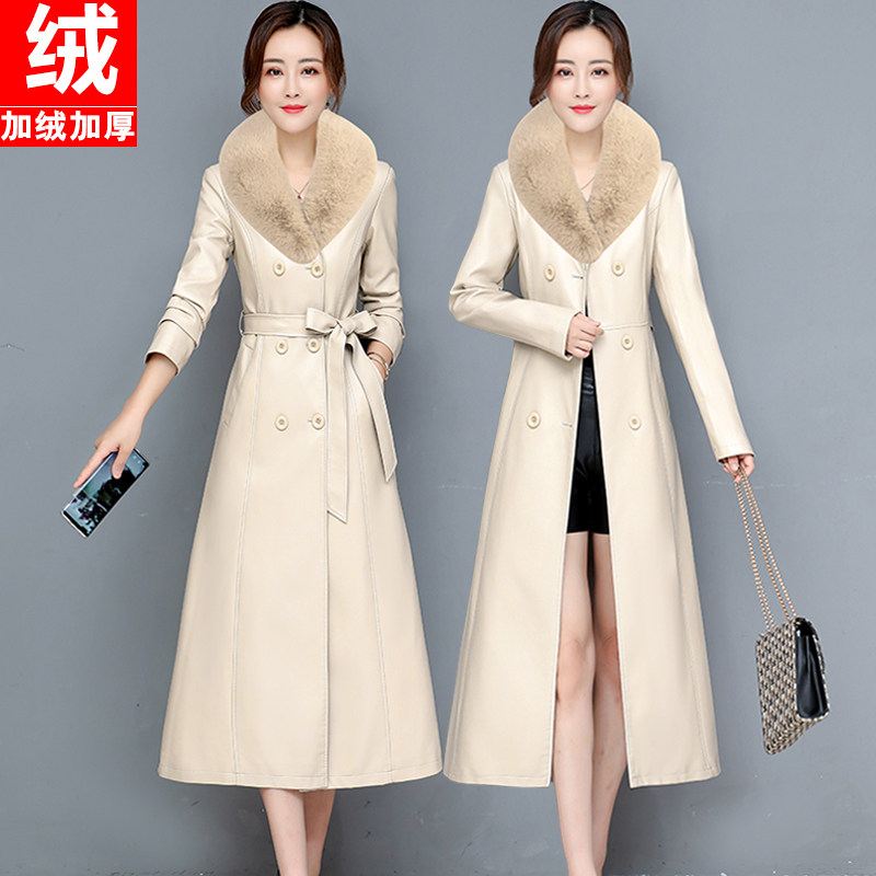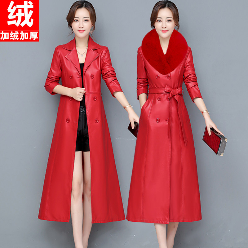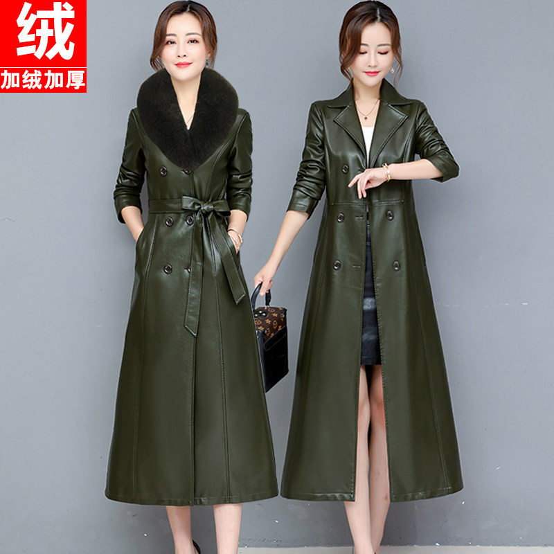 2025秋冬真皮皮衣女修身中长款过膝绵羊皮风衣大码加棉显瘦皮外套