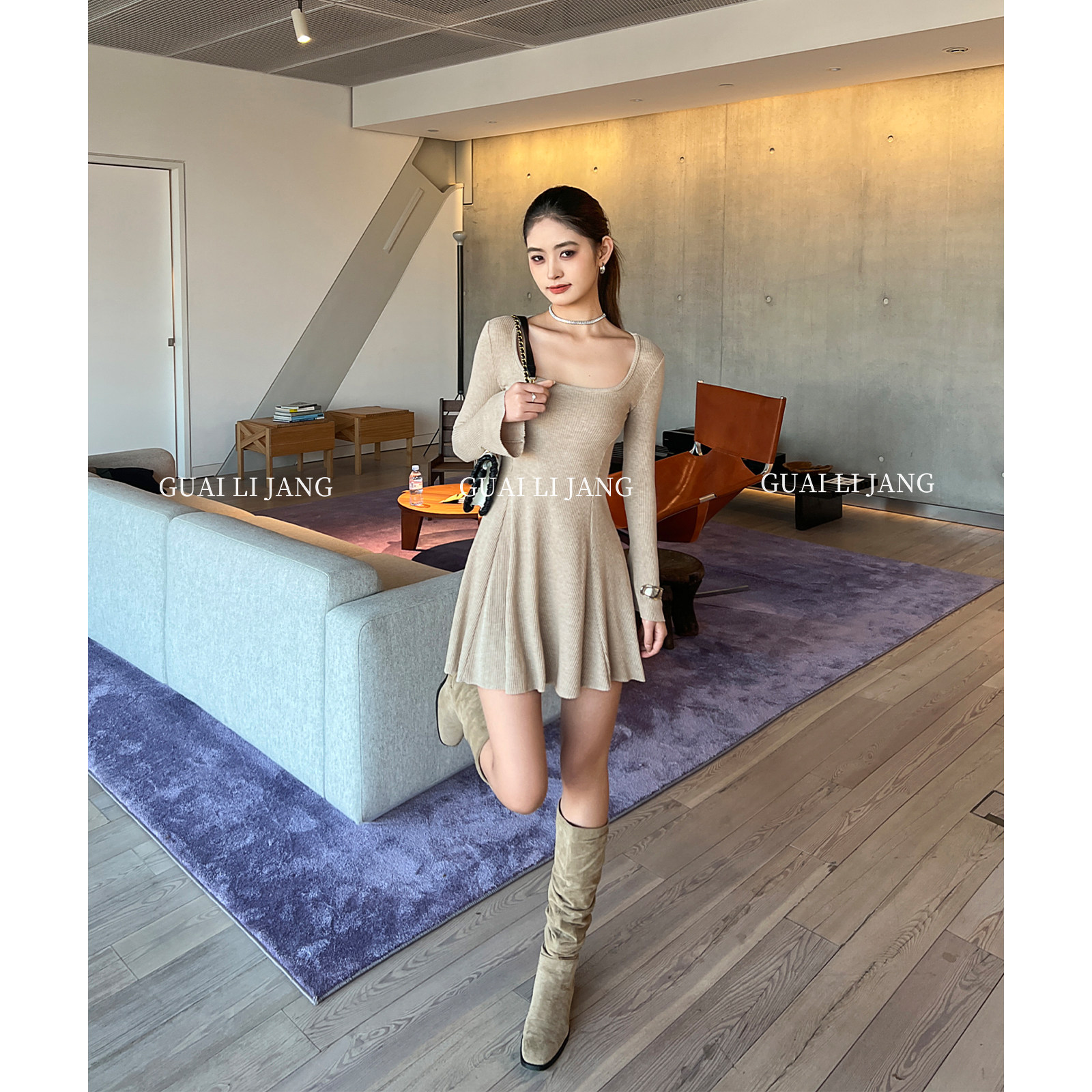 针织连衣裙女秋冬小个子修身收腰辣妹短款打底长袖a字内搭小黑裙