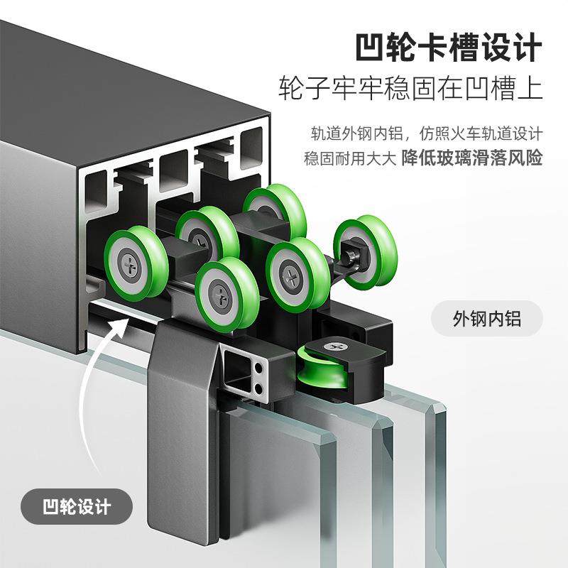 一字型三联动淋浴房型材配件卫生间浴室干湿分离推拉门隔断不锈钢