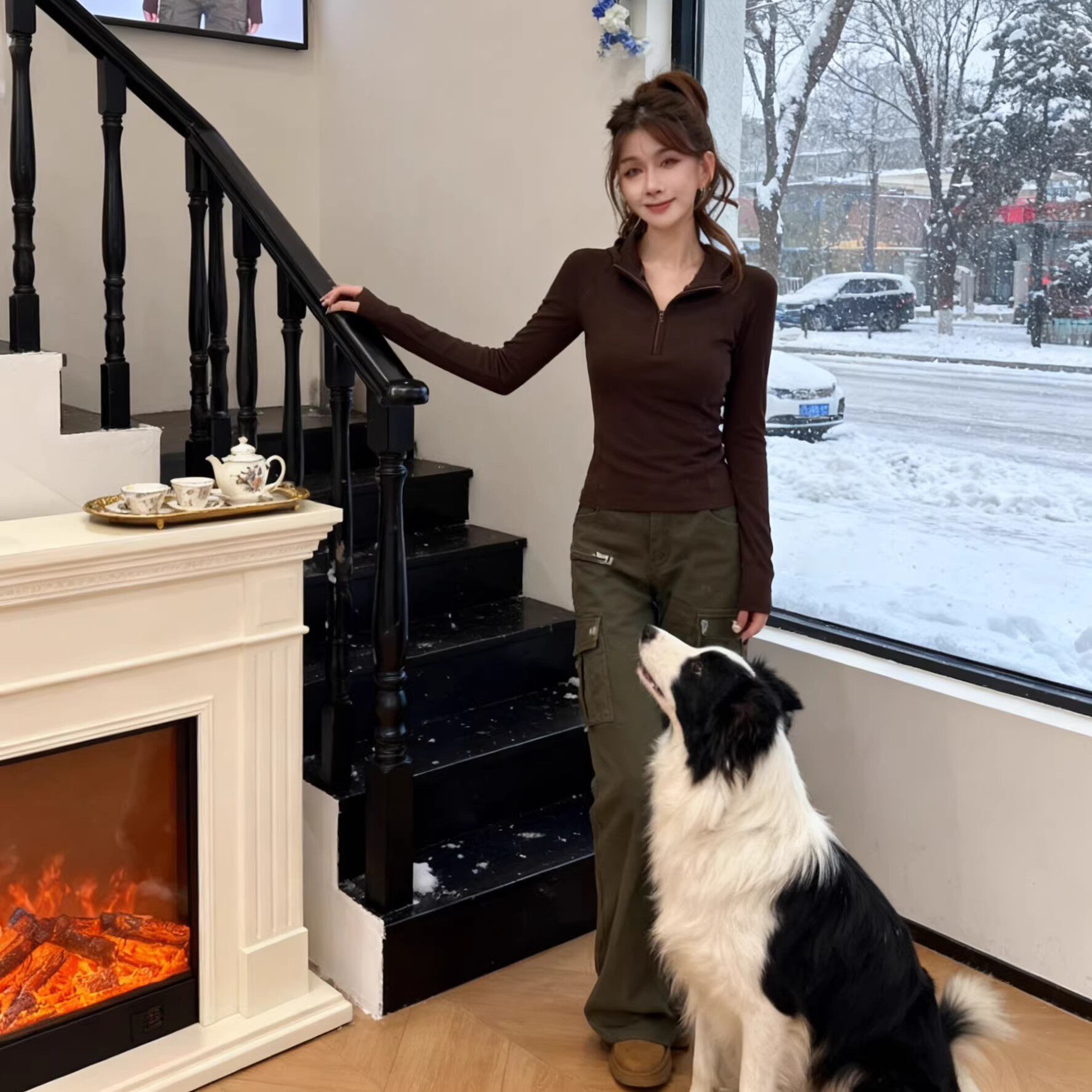 德绒半拉链黄色连帽卫衣女款2026新款爆款秋冬季内搭打底帽衫上衣