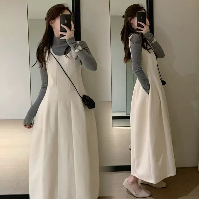 孕妇装套装休闲风冬季新款时髦气质收腰毛呢背心连衣裙女无袖长裙