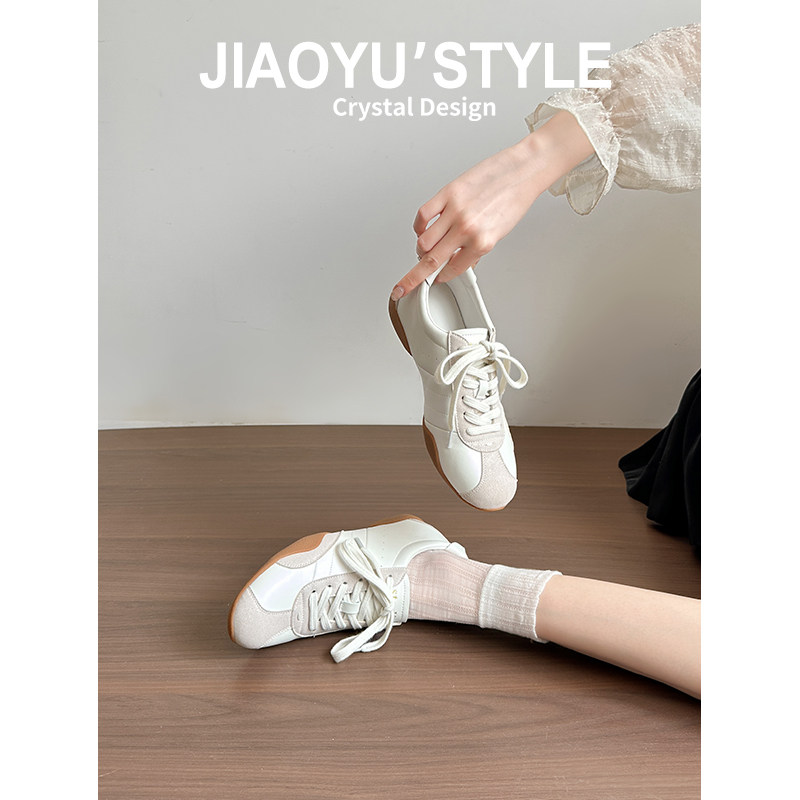 真皮~骄屿内增高红色芭蕾德训鞋女2026新款系带运动休闲鞋阿甘鞋