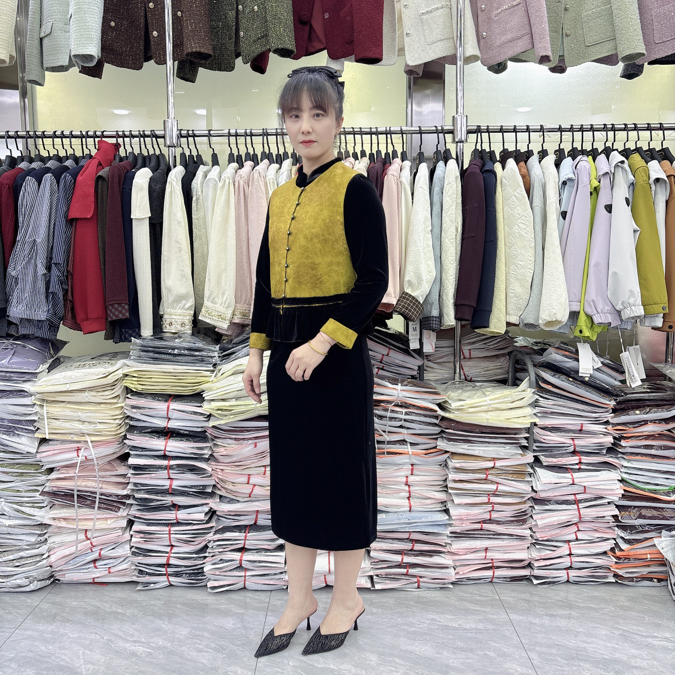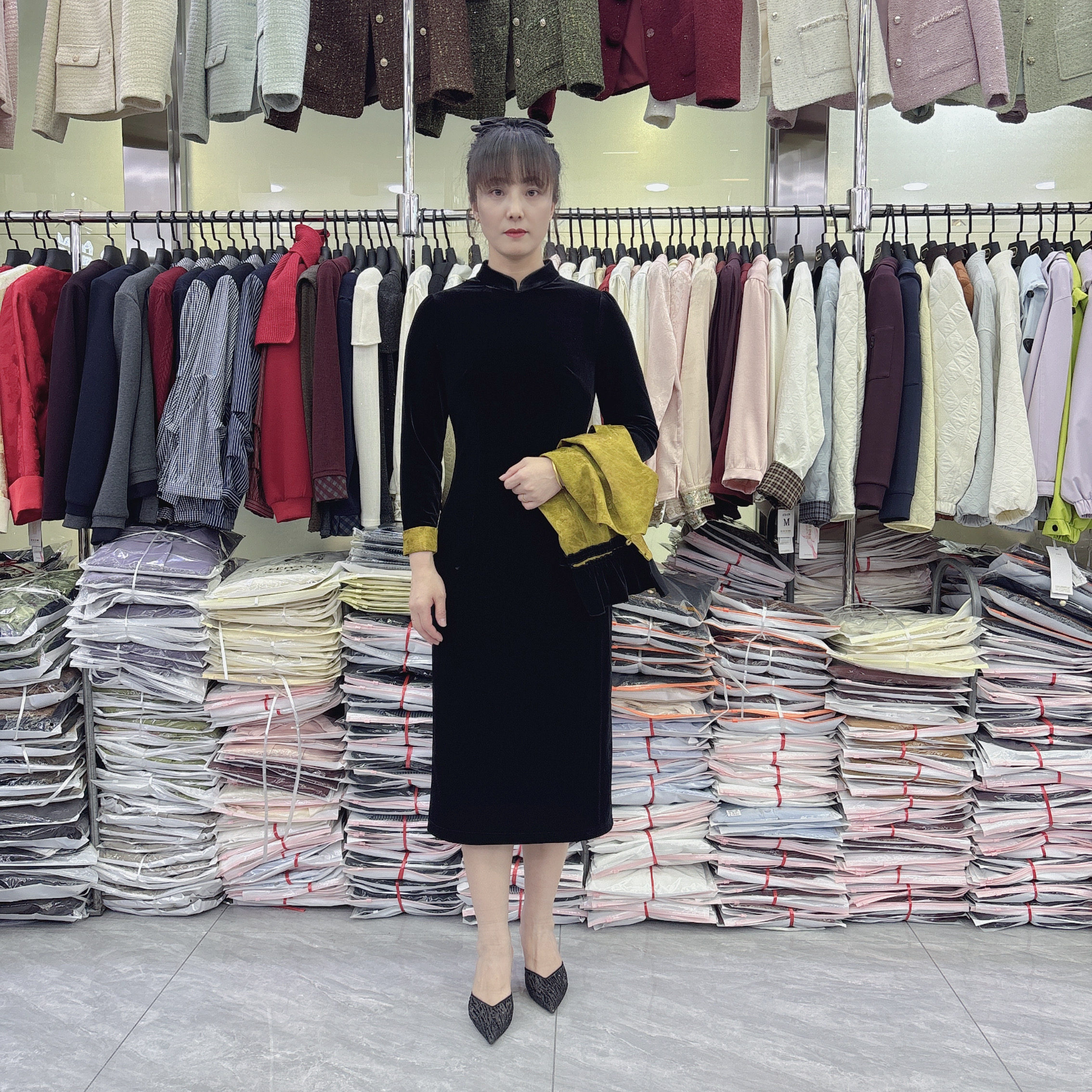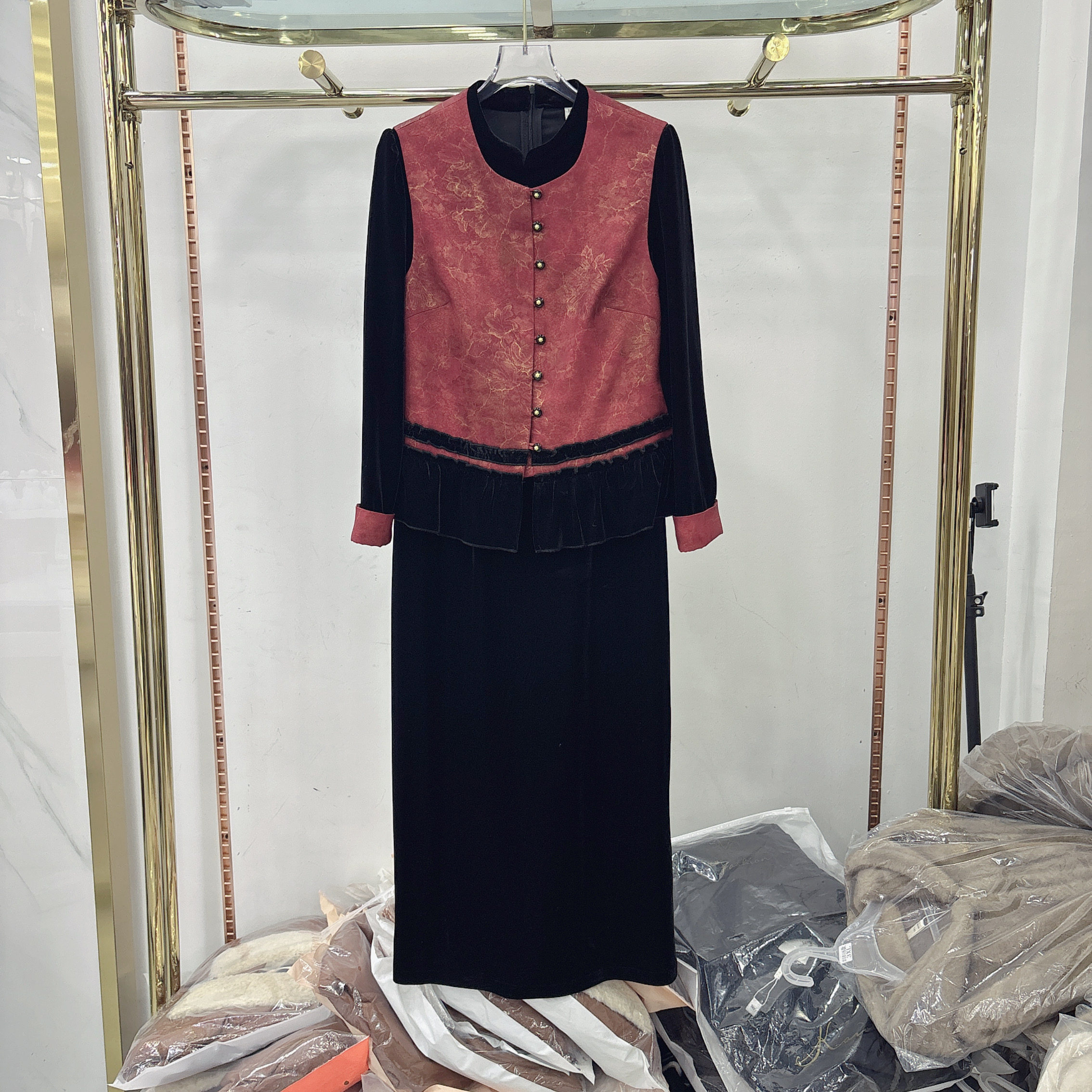 2026春季新款长袖圆领丝绒连衣裙新中式国风马夹长裙休闲女两件套