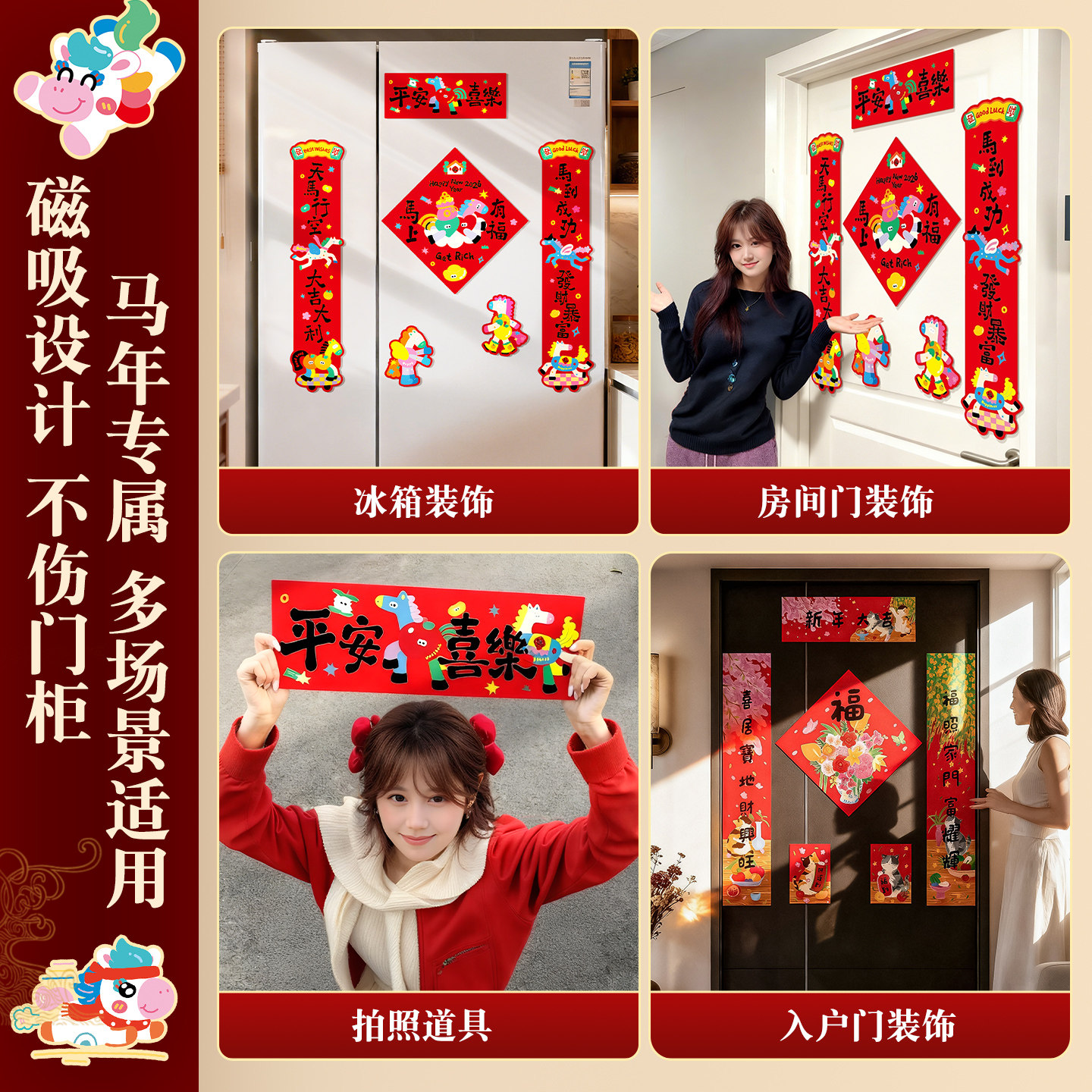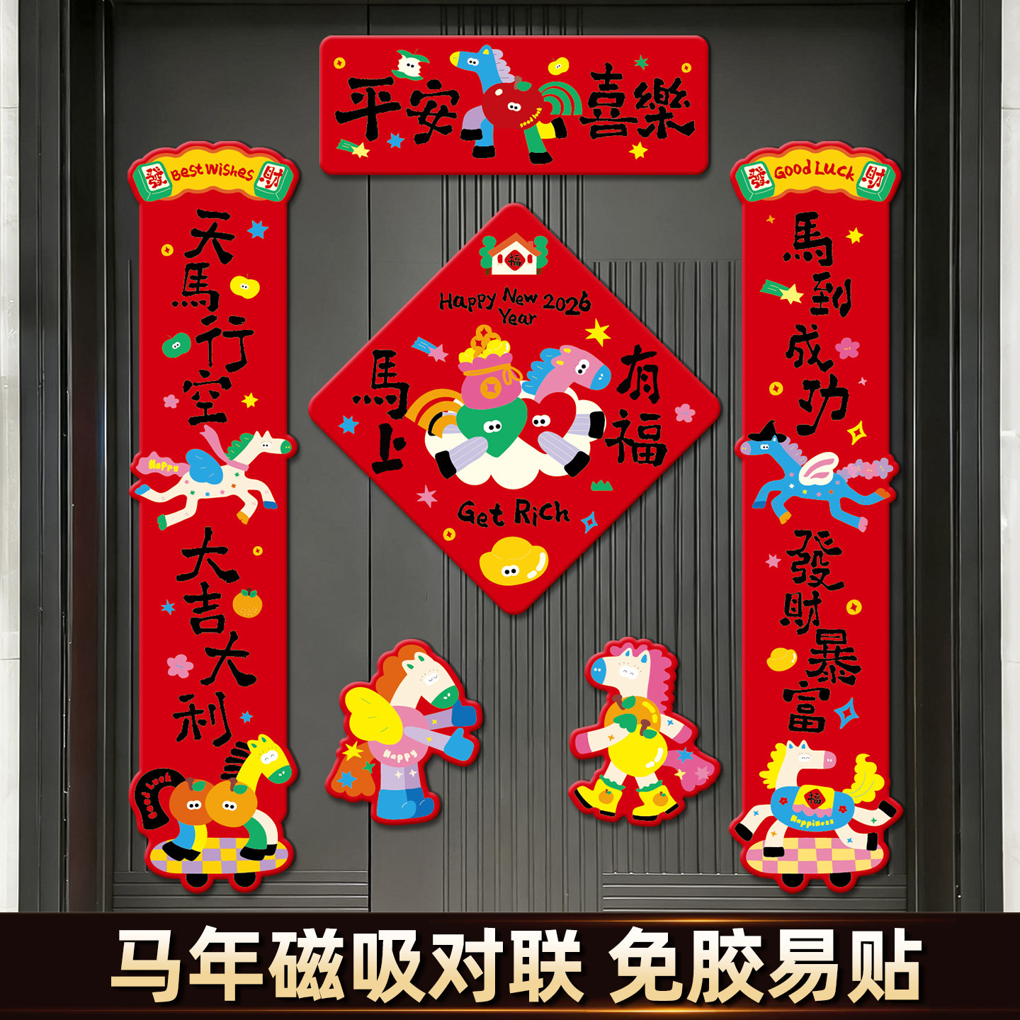 2026新款马年磁吸对联春节入户门贴创意对联新年福字门贴装饰用品