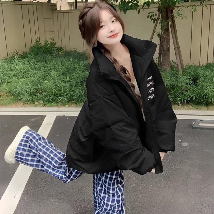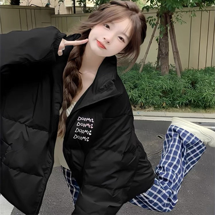 冬季新款黑色立领百搭羽绒棉服女大童初中高中学生宽松面包服外套
