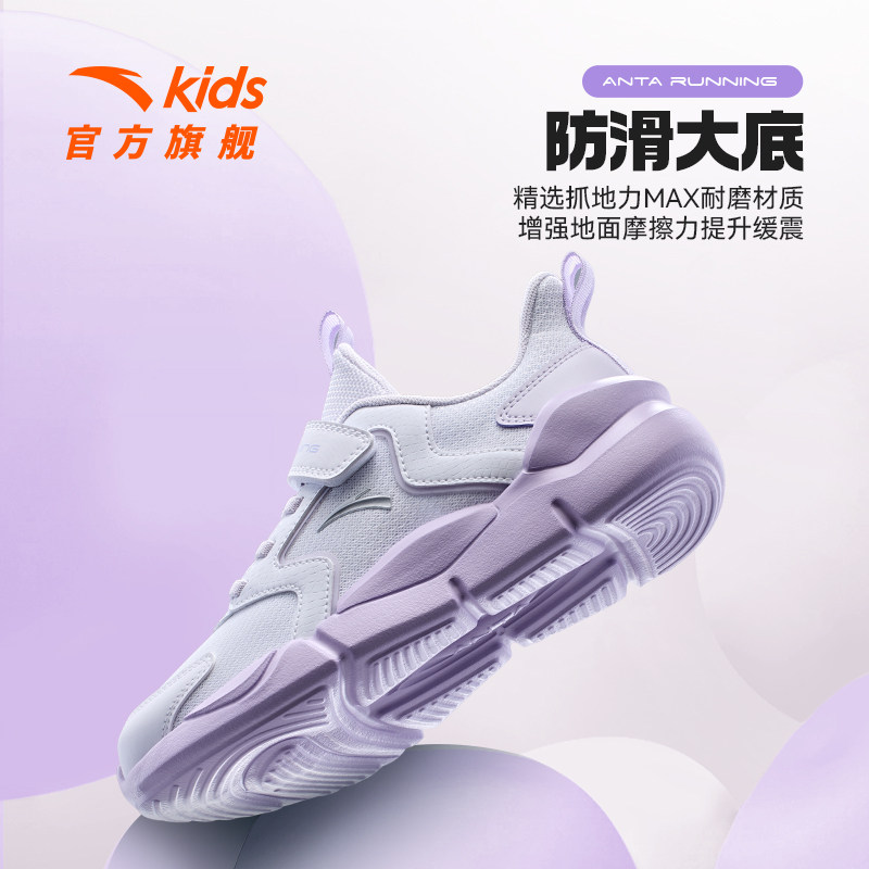 311线报网描述:安踏儿童女童运动跑步鞋革面保暖防水