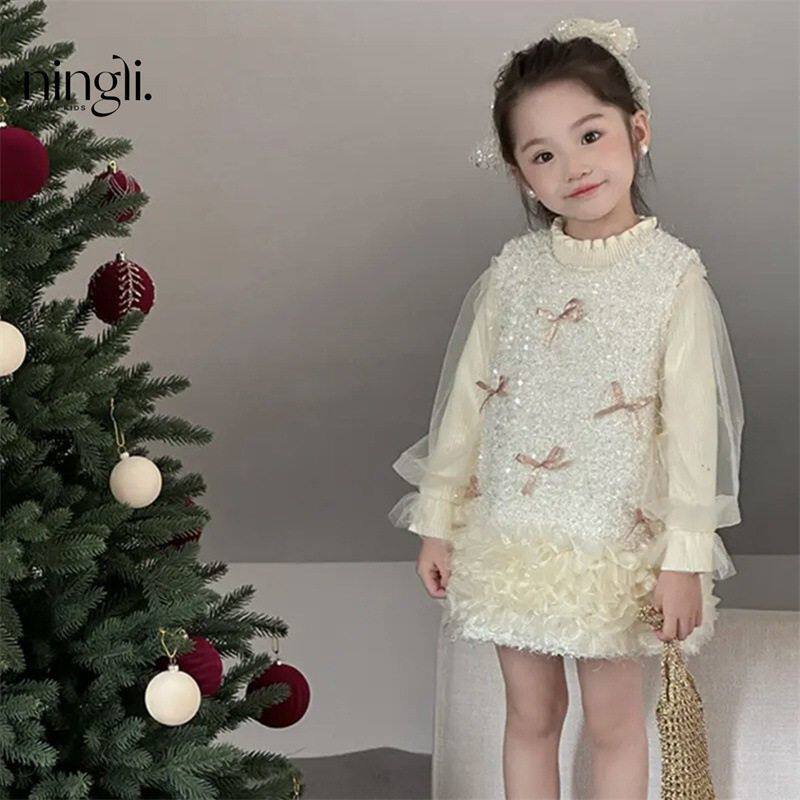 柠里女童小香风加绒连衣裙秋冬装新款洋气高级感女宝宝亮片公主裙