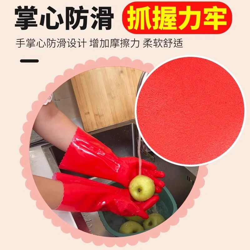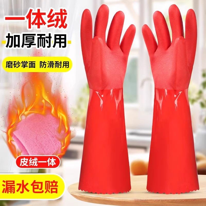 厨房加绒加厚保暖洗碗加长手套男女家务耐用胶皮洗衣清洁橡胶乳胶