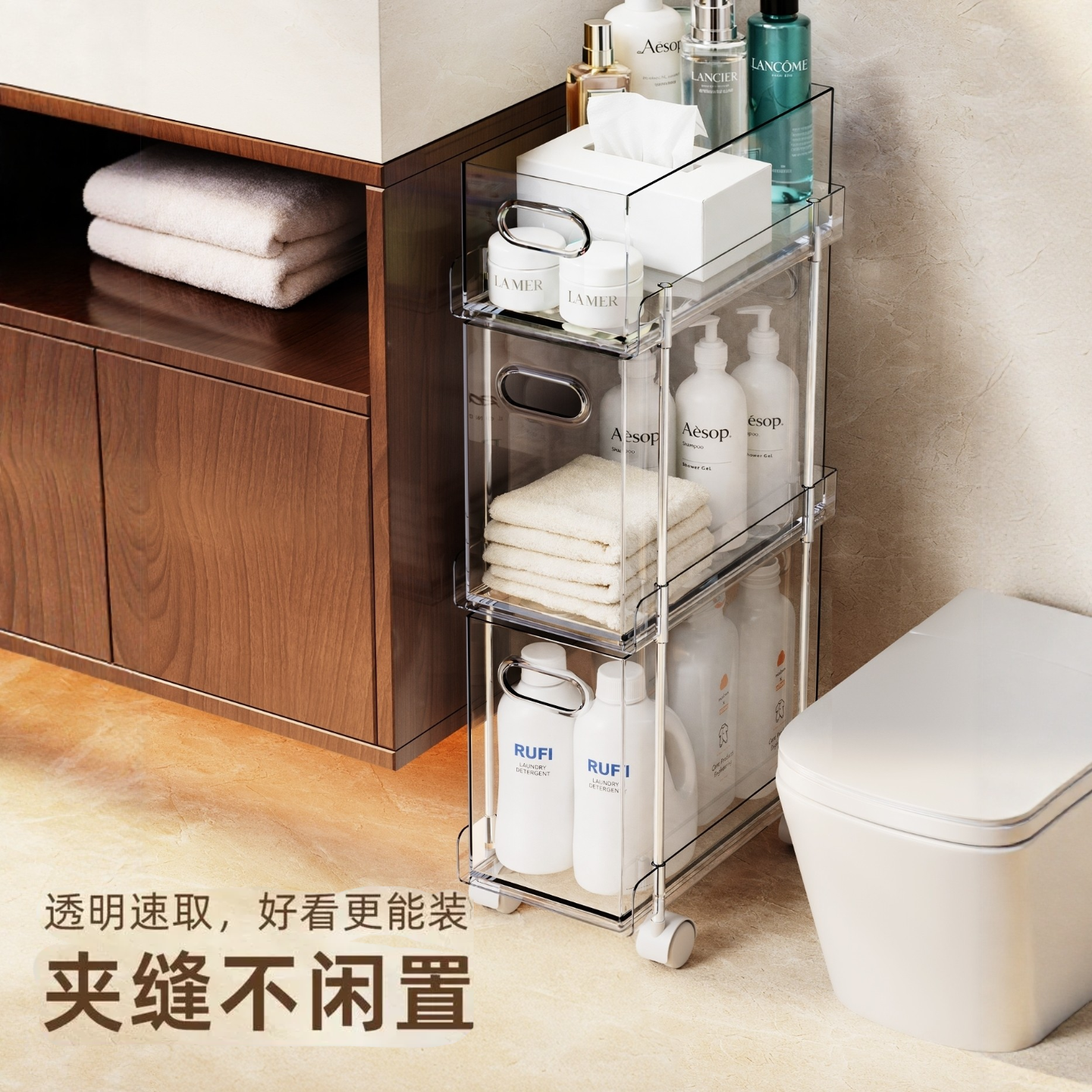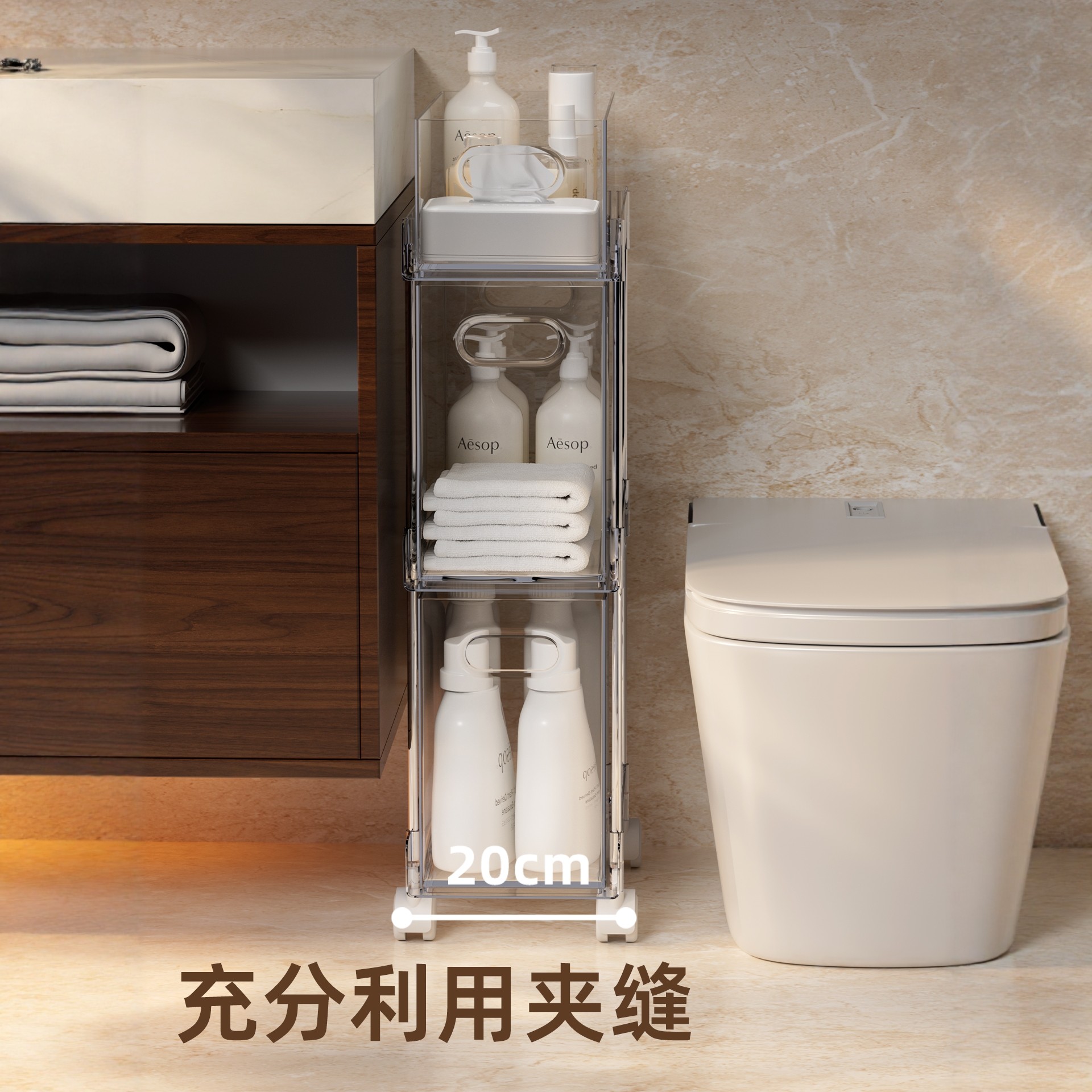 卫生间夹缝置物架20cm缝隙小推车落地多层厕所窄缝抽屉式收纳柜