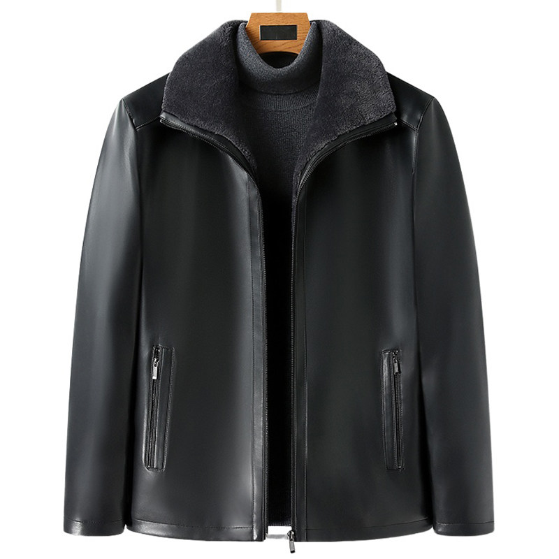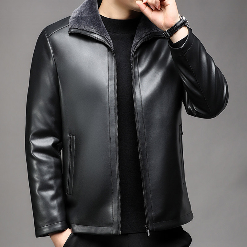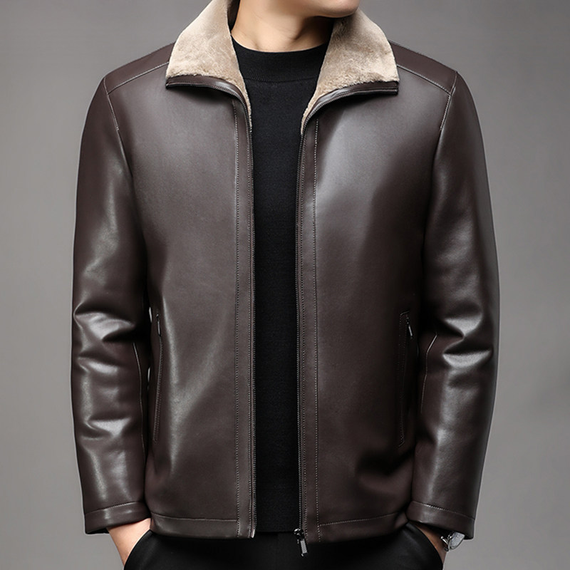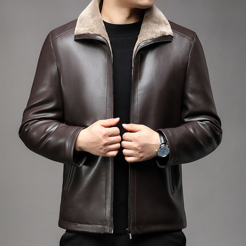 海宁男士真皮皮衣翻领加绒加厚皮毛一体外套绵羊皮夹克中年爸爸装