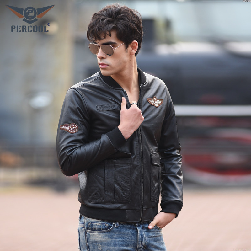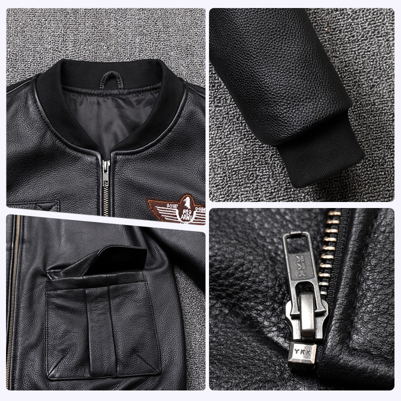 棒球服领干练短款真皮皮衣男士头层牛皮飞行服休闲皮夹克潮流外套