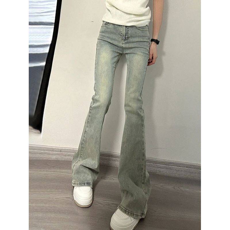 中大童装小个子怀旧黄泥旧做修身高腰喇叭裤新款牛仔裤女孩儿初中