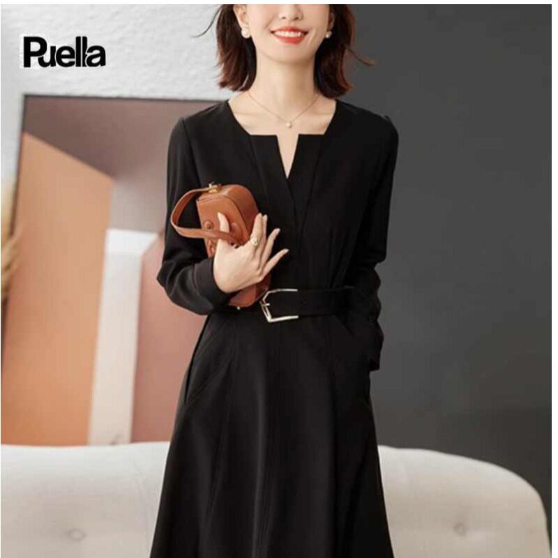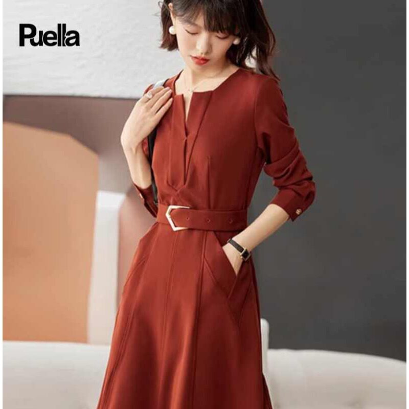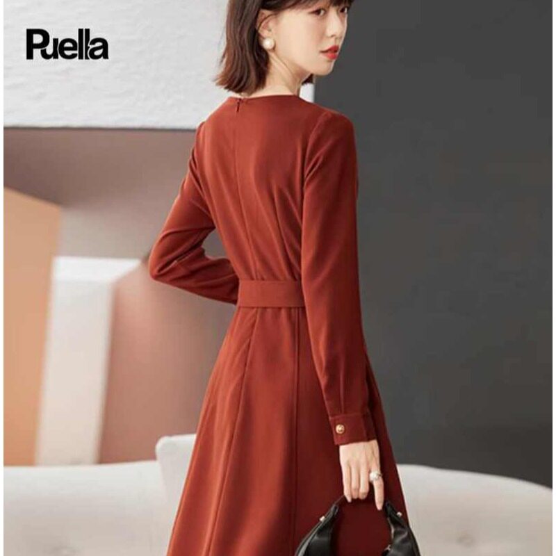 气质连衣裙女2025年春秋季新品小个子时尚百搭法式复古橘红色长裙